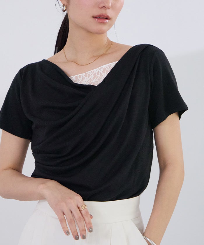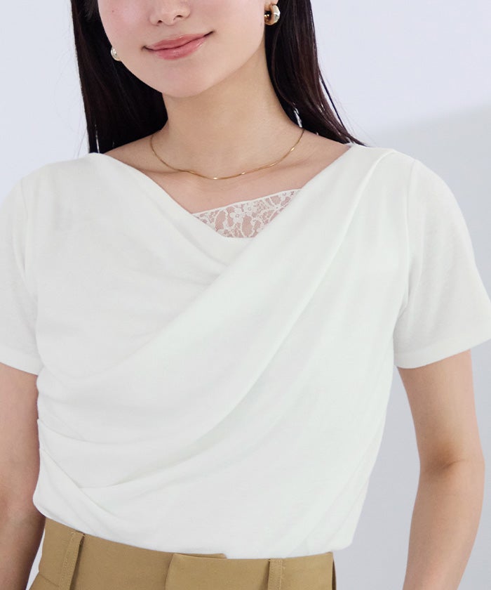 レースをドッキングしているので、1枚でレイヤード風スタイルが完成するのも嬉しいポイント。