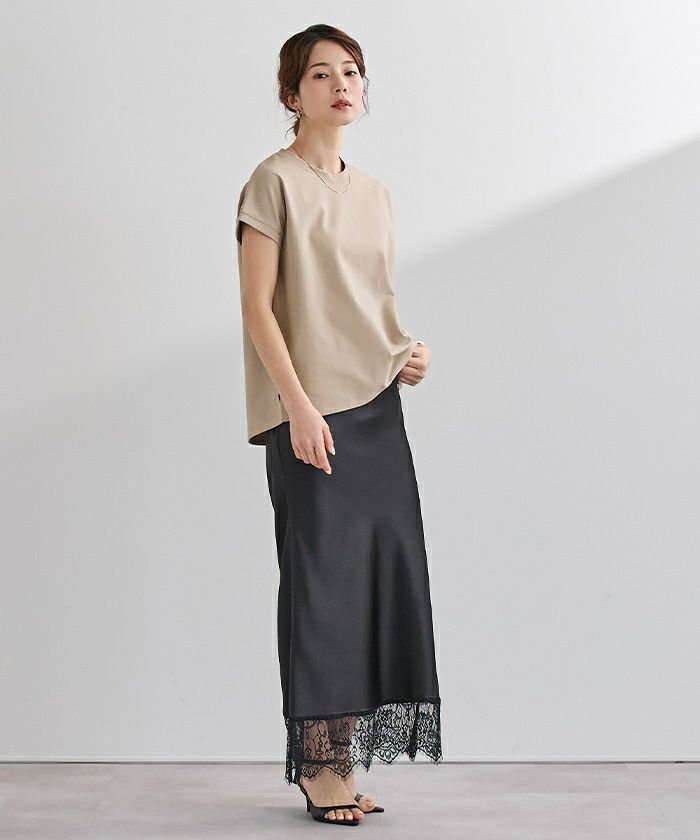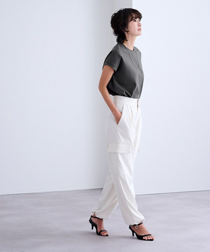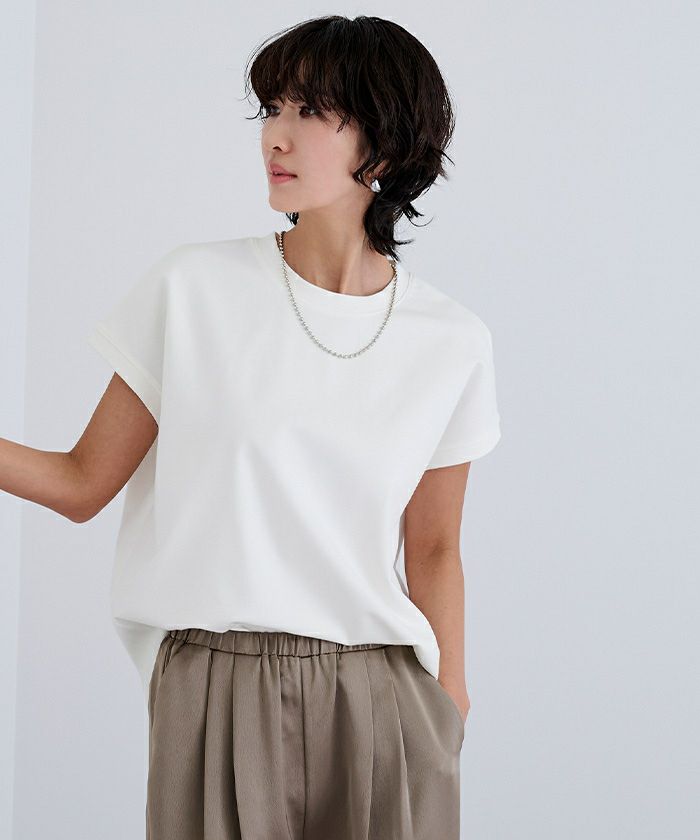 肩先をやさしく覆うフレンチスリーブが、二の腕をすっきりと見せてくれるトップス。