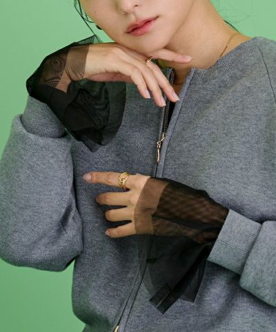 シンプルなデザインながらも、シアー素材の透け感がスタイリングに軽やかさを与えます。