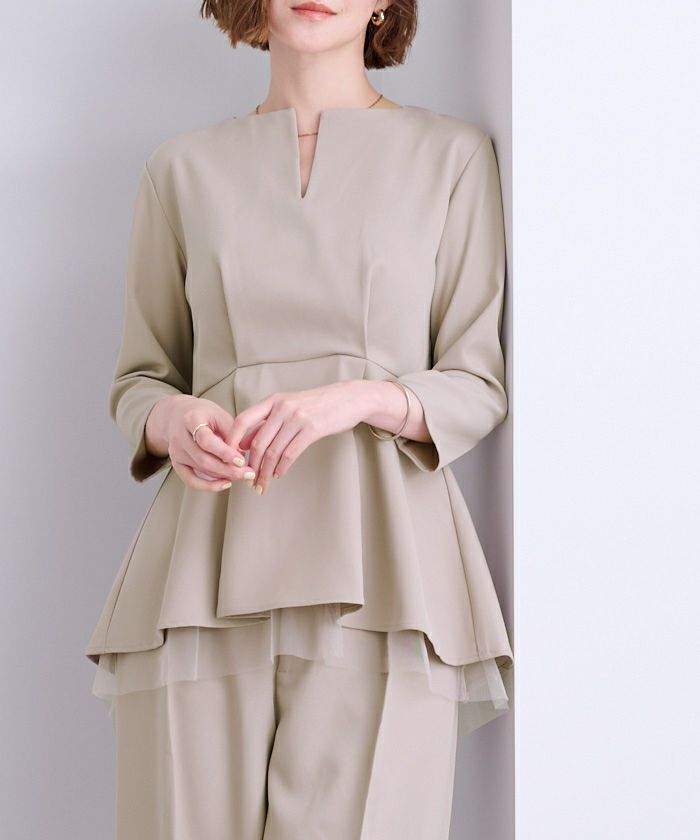他の画像を見る 【セレモニーアイテム】【セットアップ可能】【洗える】【期間限定★SALE】 キーネックチュールティアードトップス 定価 ¥ 6,589 のところ 価格 ¥ 3,294 税込 お気に入りに登録する