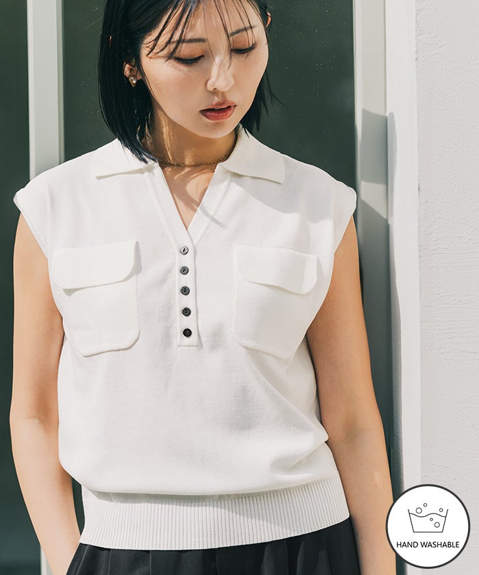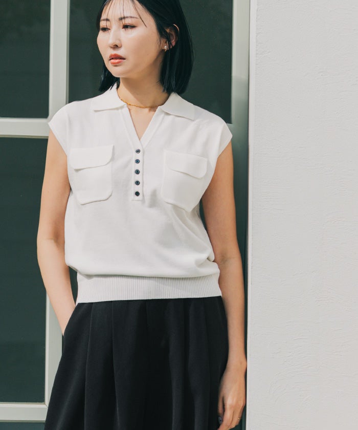 他の画像を見る 【新作★期間限定10%OFF★27日11:00~3日10:59】【うえむらあやのさんコラボアイテム】 ノースリーブスキッパーポロニット【メール便可/100】 定価 ¥ 4,939 のところ 価格 ¥ 4,445 税込 販売期間 2026/03/27 11:00 〜 2026/04/03 10:59 お気に入りに登録する