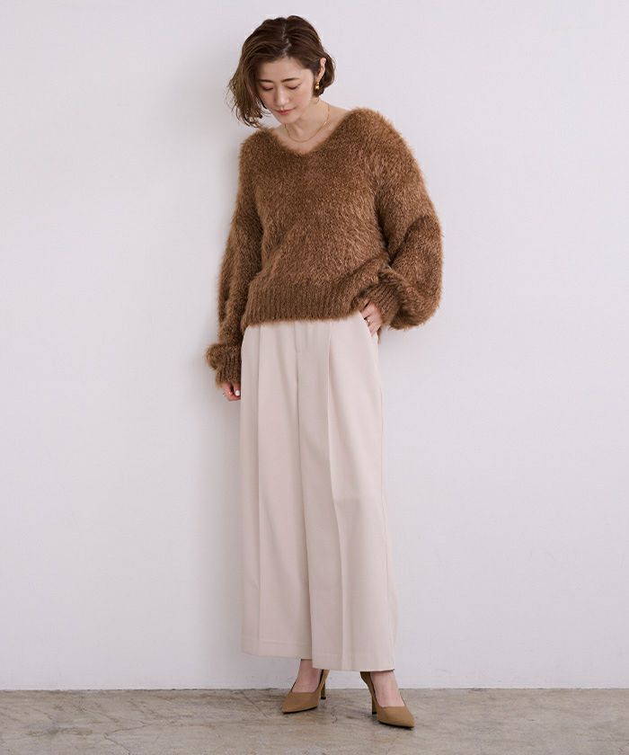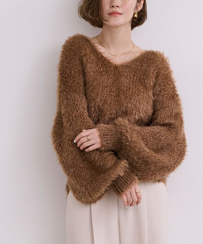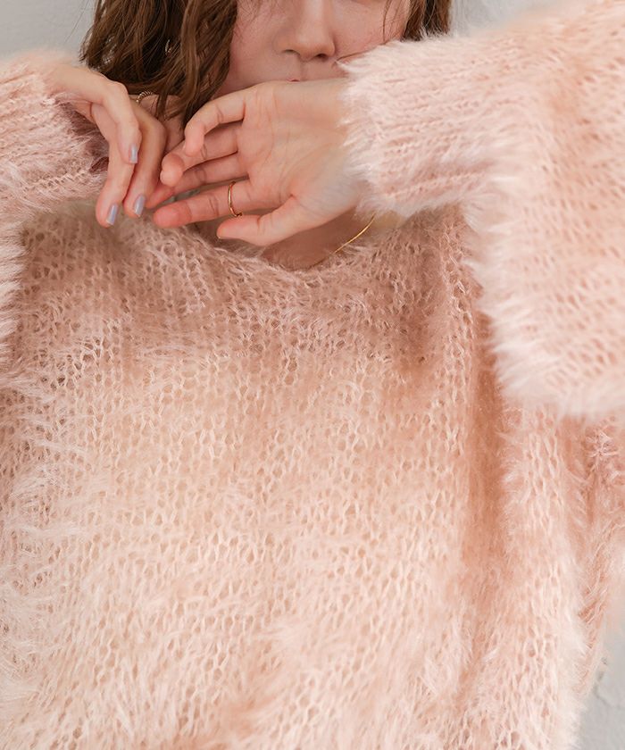 Vネックオーバーサイズシアーローゲージニット