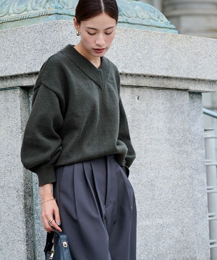 Vネックラグランニットプルオーバー