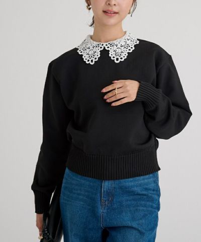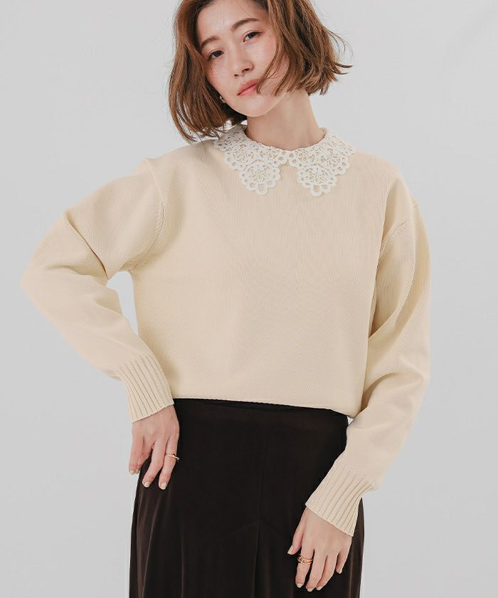 クラシカルな取り外し襟が上品に映えるニットプルオーバー。