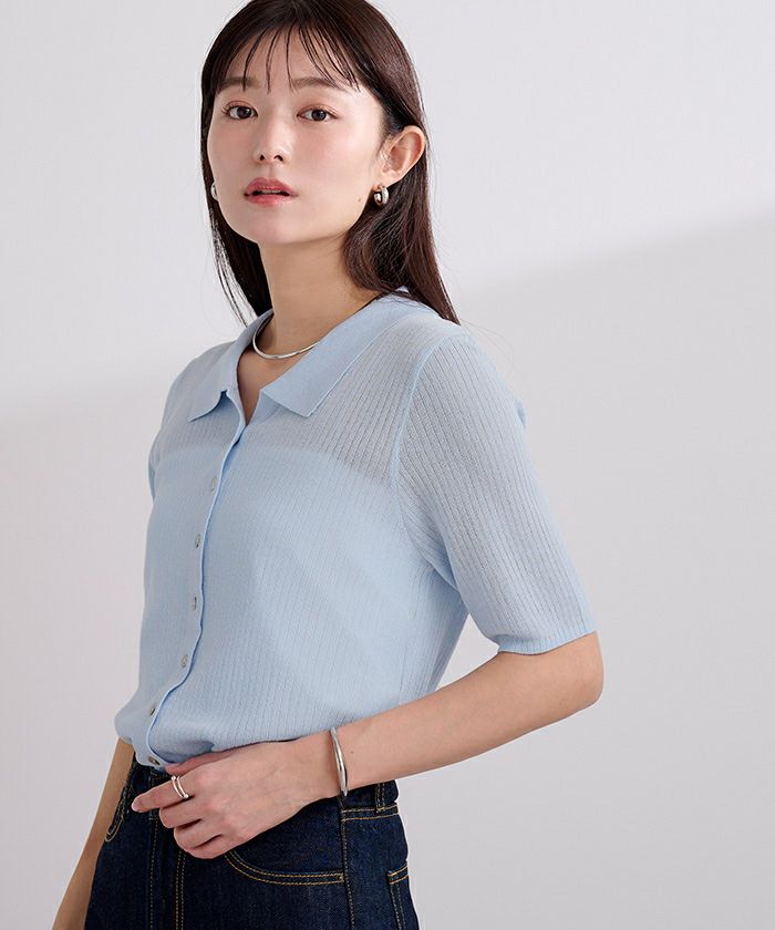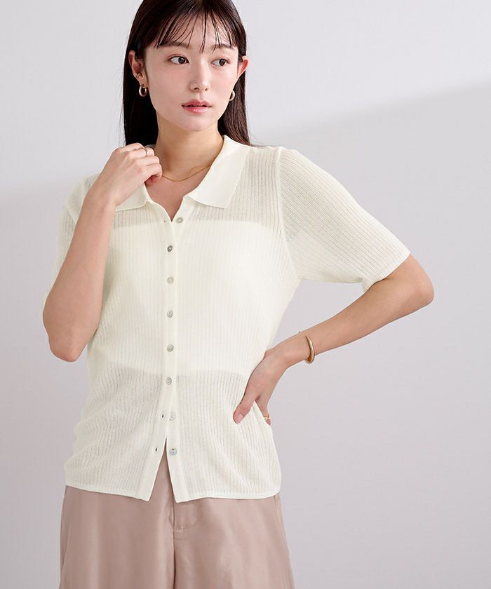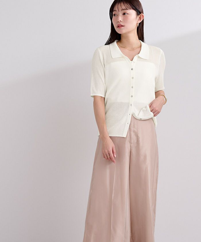 ほどよい透け感とラメのきらめきが、1枚で着映えするアイテムです。