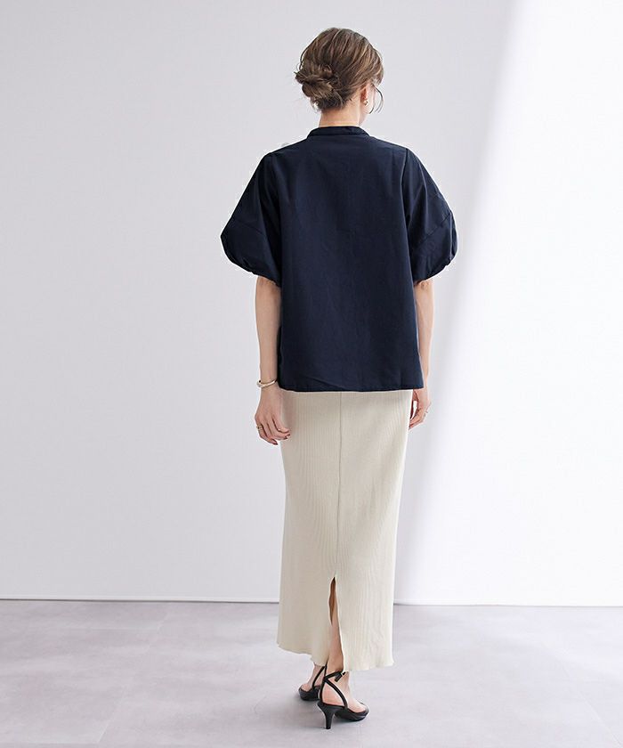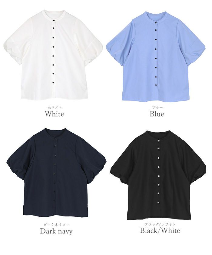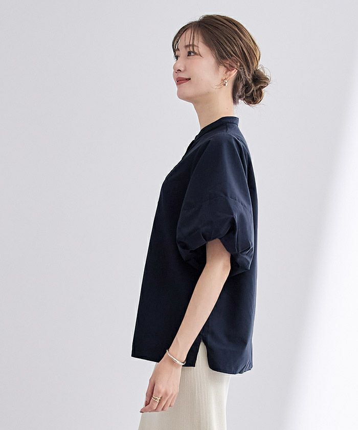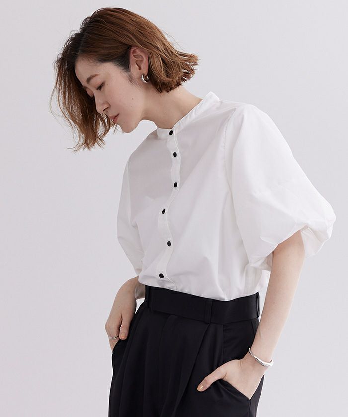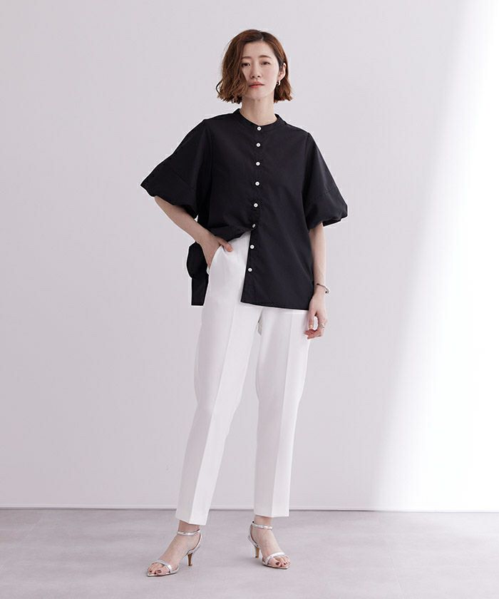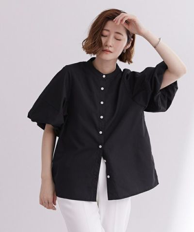 バルーンスリーブとバンドカラーが大人可愛いブラウス。