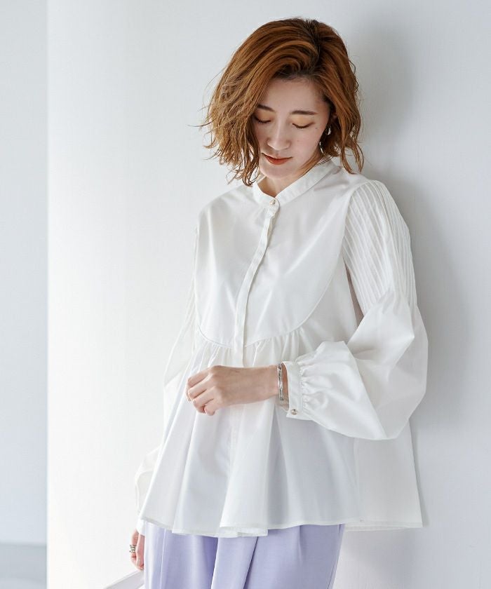 シルエットを綺麗に見せるハリ感のあるシャツ生地を使用。