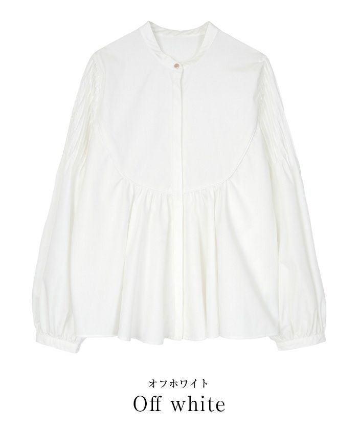 ウエストにギャザーが入ったペプラム調のブラウス。