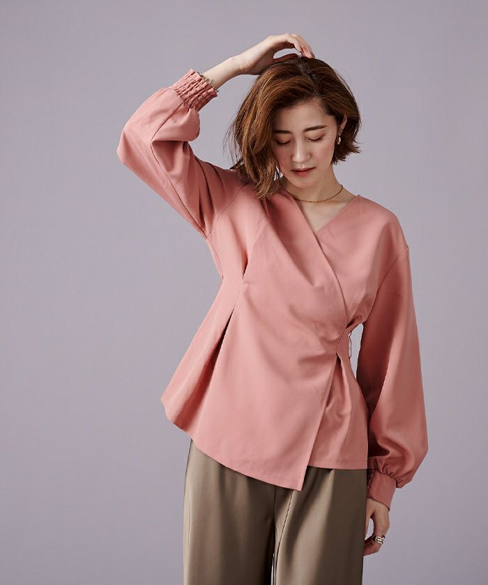 ベルト付ウエストタックカシュクールブラウス