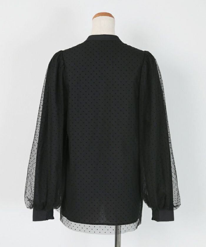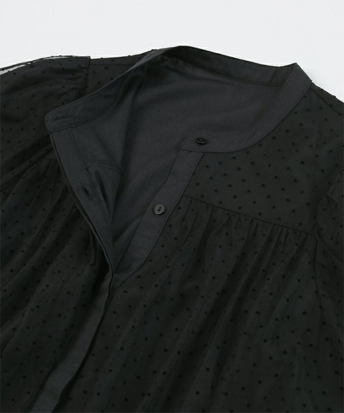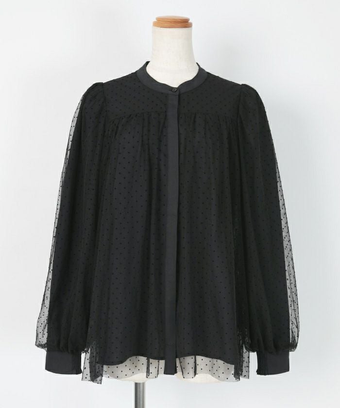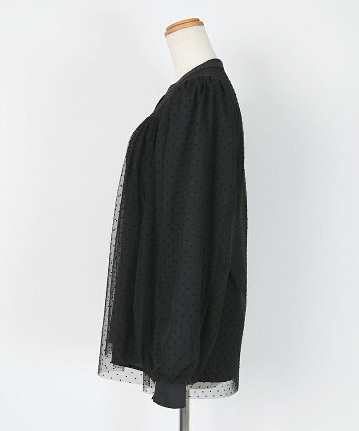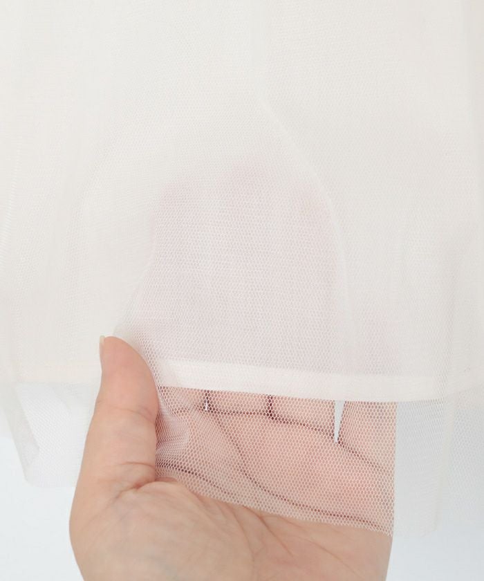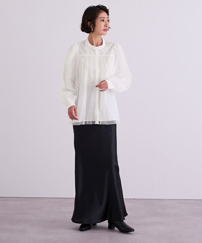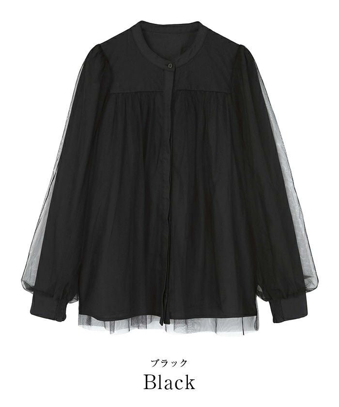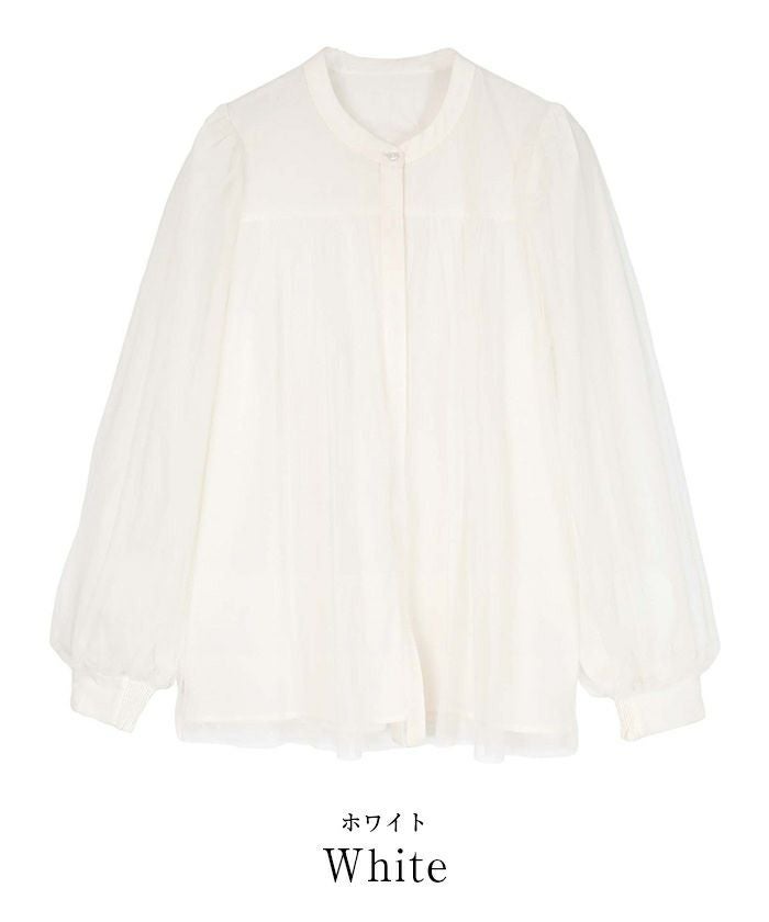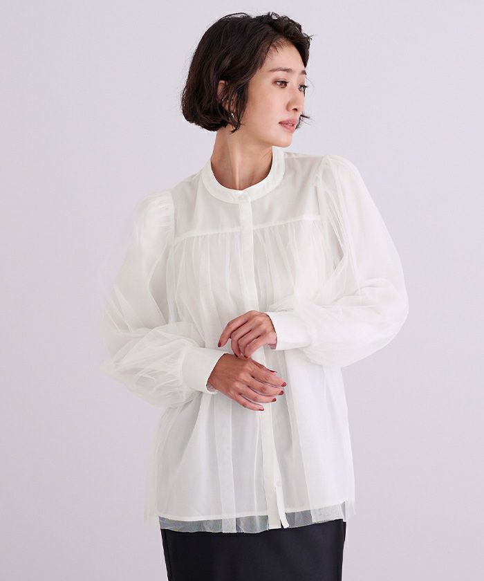 チュール素材の透け感がトレンドムード漂うブラウス。