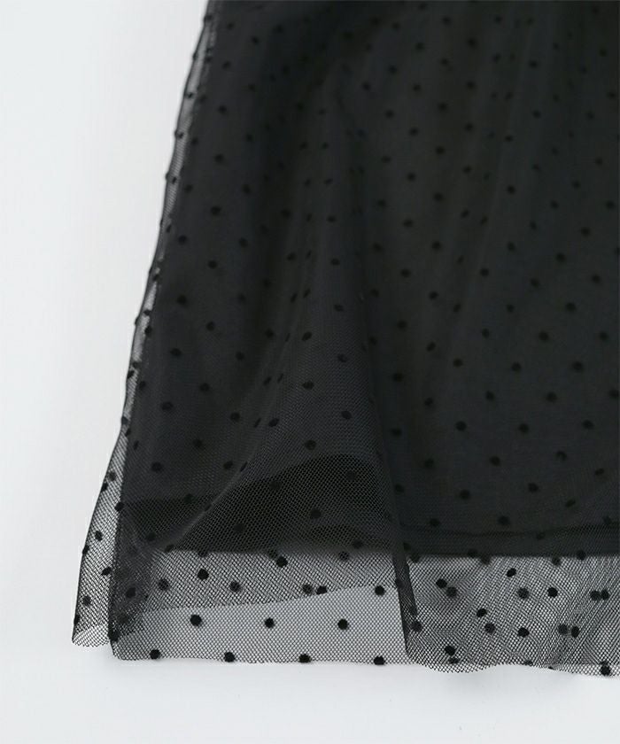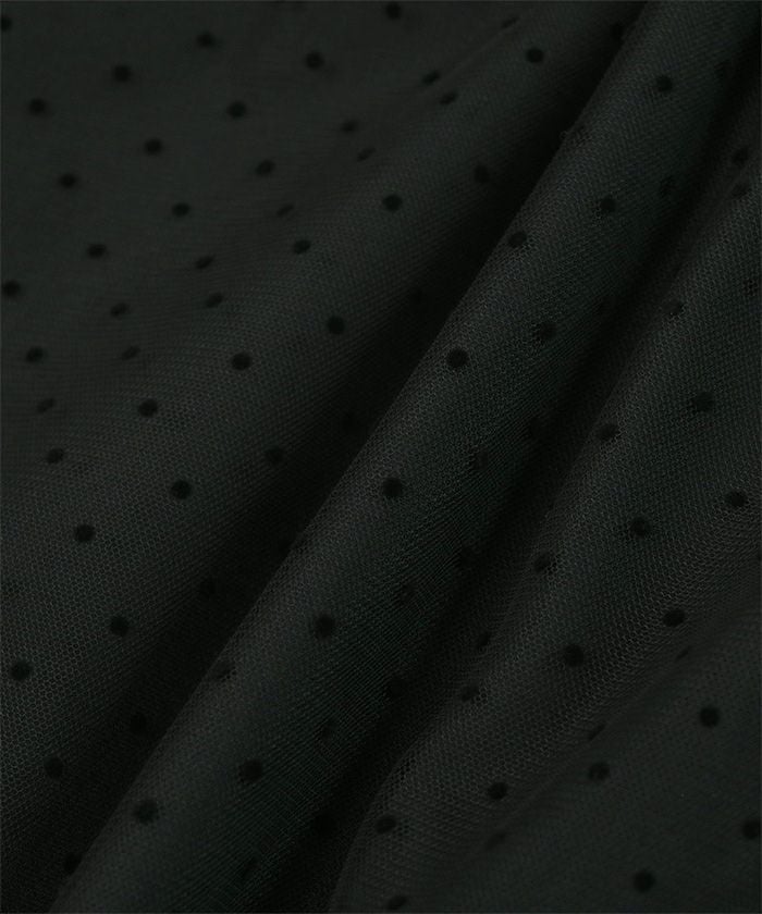 ドット柄の黒を購入しました。チュール部分は写真のとおりふわっとしてて、肌に近い生地はピチッ?としてるかも!秋の時期から重宝すると思います。