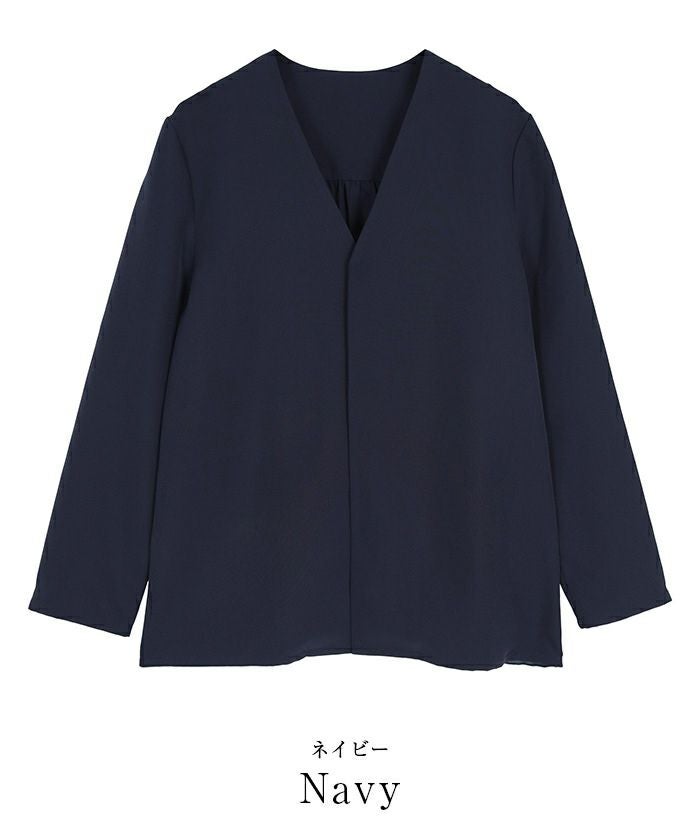 スッキリとしたvネックが好みなので、3色全部購入しました。バックプリーツが軽やかでさりげなく女性らしいブラウスです。いづれもベーシックカラーなので、ネックレスやブローチなどで変化をつけて着こなしたいと思います。 しっかりとした生地ですが、ホワイトは下着の色に気をつけた方がいいと思います。