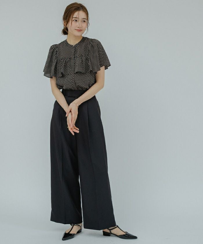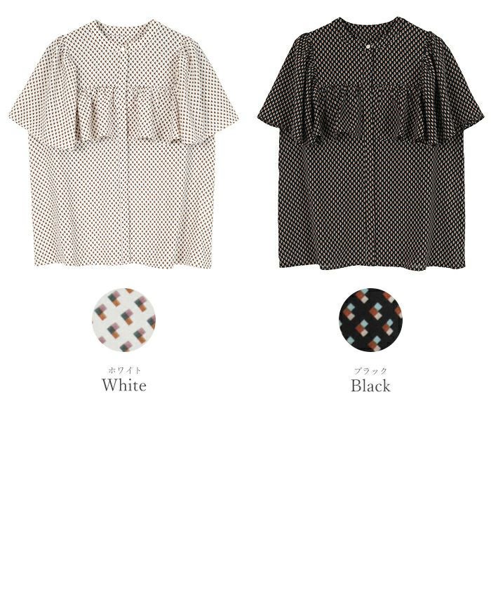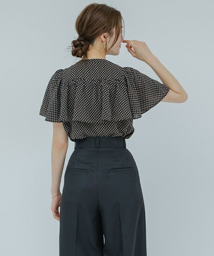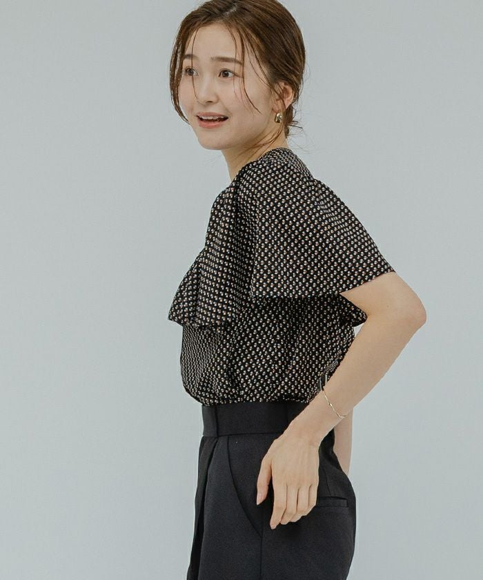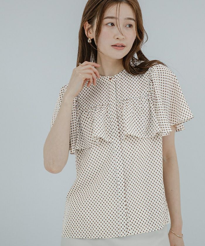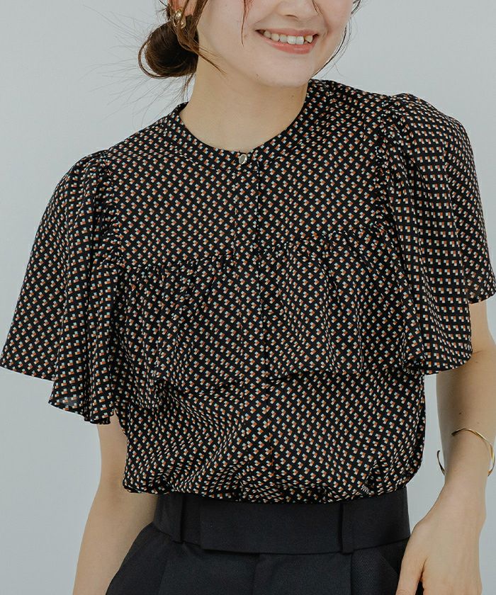 ゴールド釦ジオメトリックフリルブラウス【メール便可/100】
