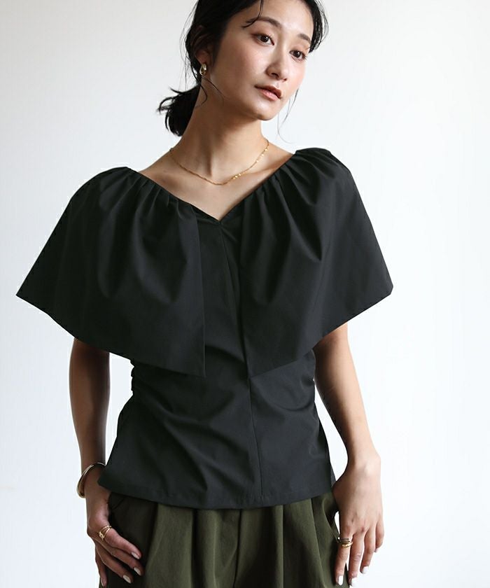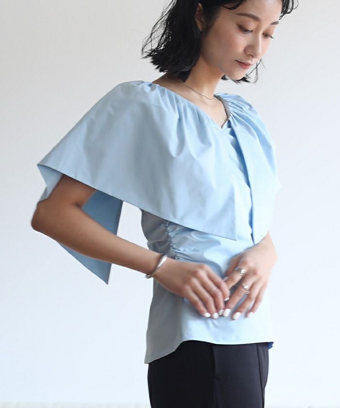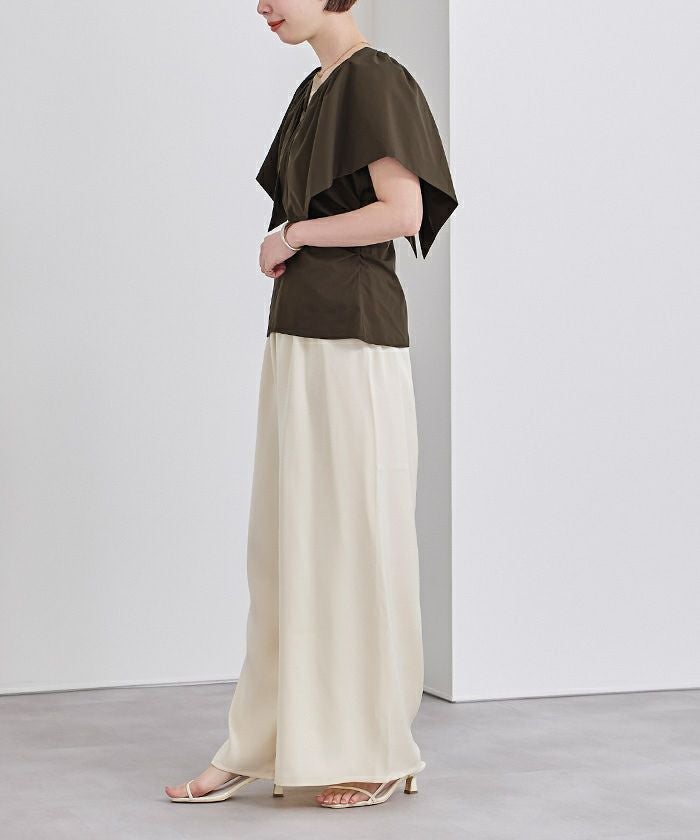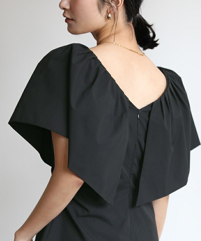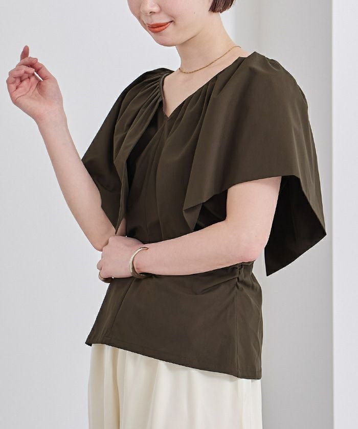 タックの入ったケープのデザインで、1枚で華やかになります。