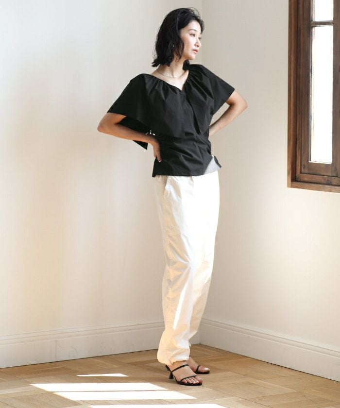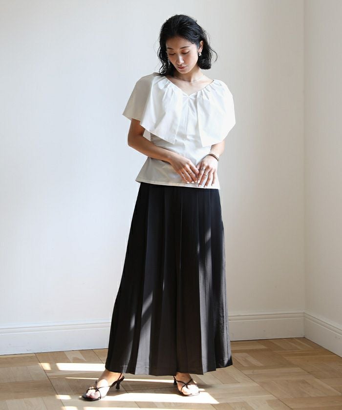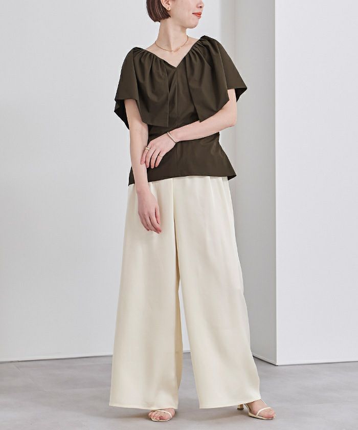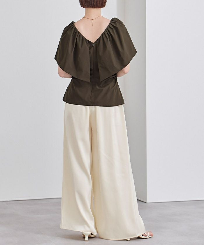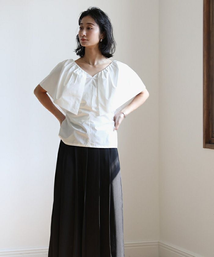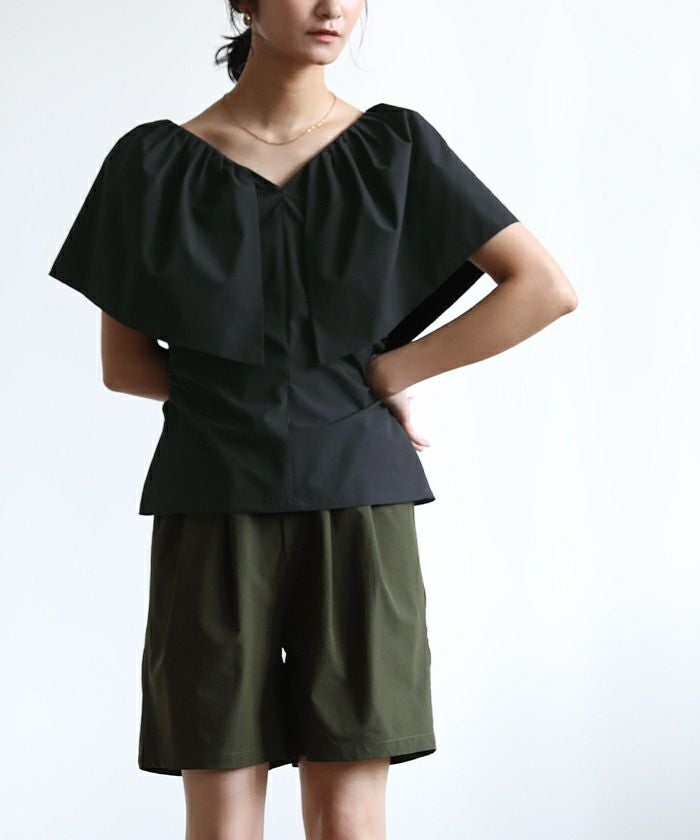 タックの入ったケープのデザインで、1枚で華やかになります。
