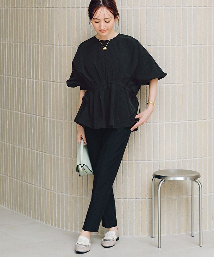 ウエストの絞り具合が調整できて、横から見たシルエットも綺麗に見えます。 洗濯しても生地がクタっとならなくていいです。
