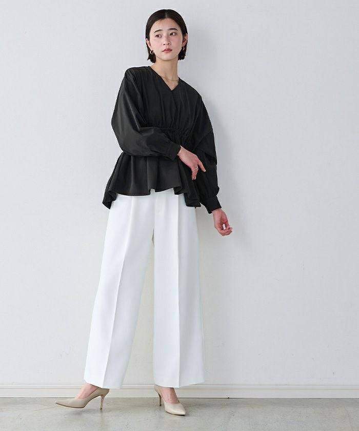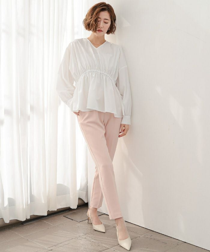 ウエストに入ったギャザーが自然なシェイプを生み、スタイルアップ効果も期待できます◎