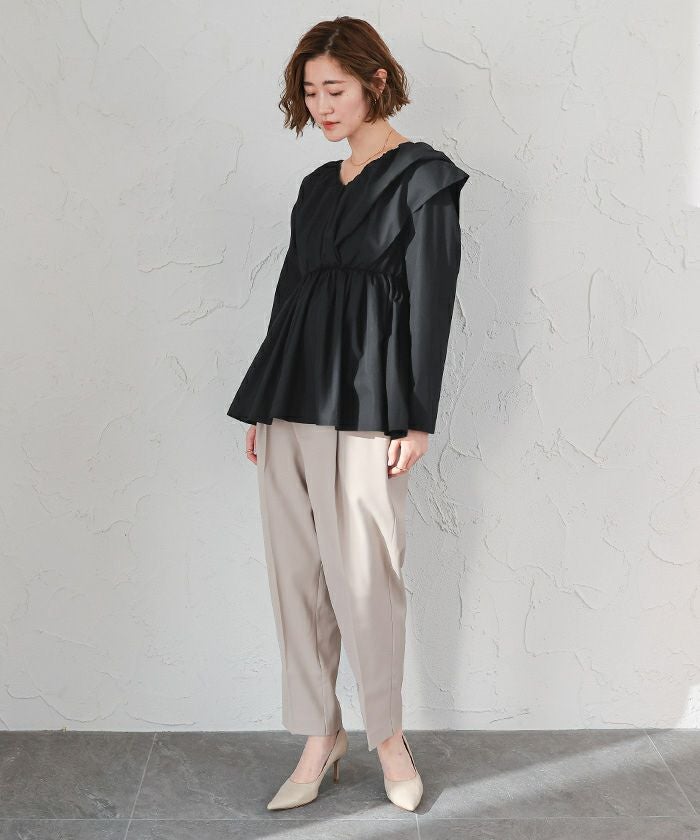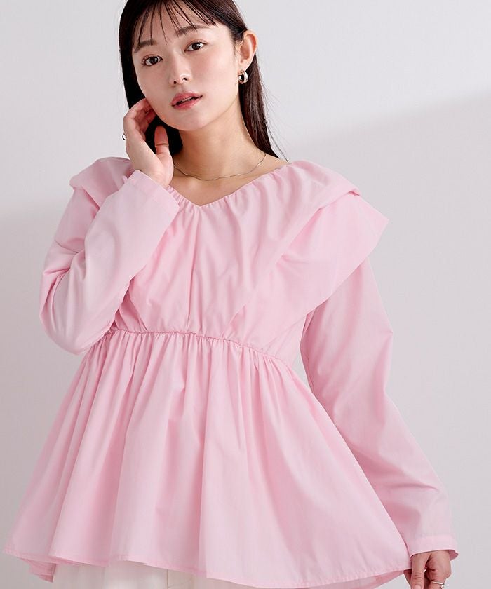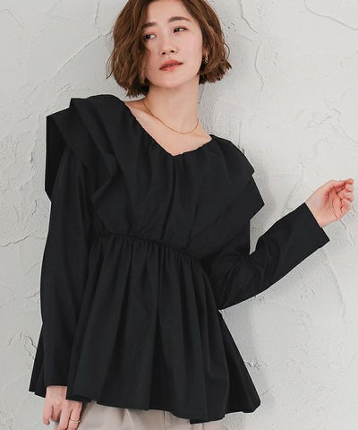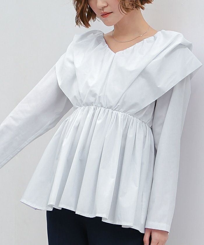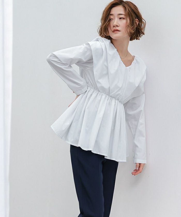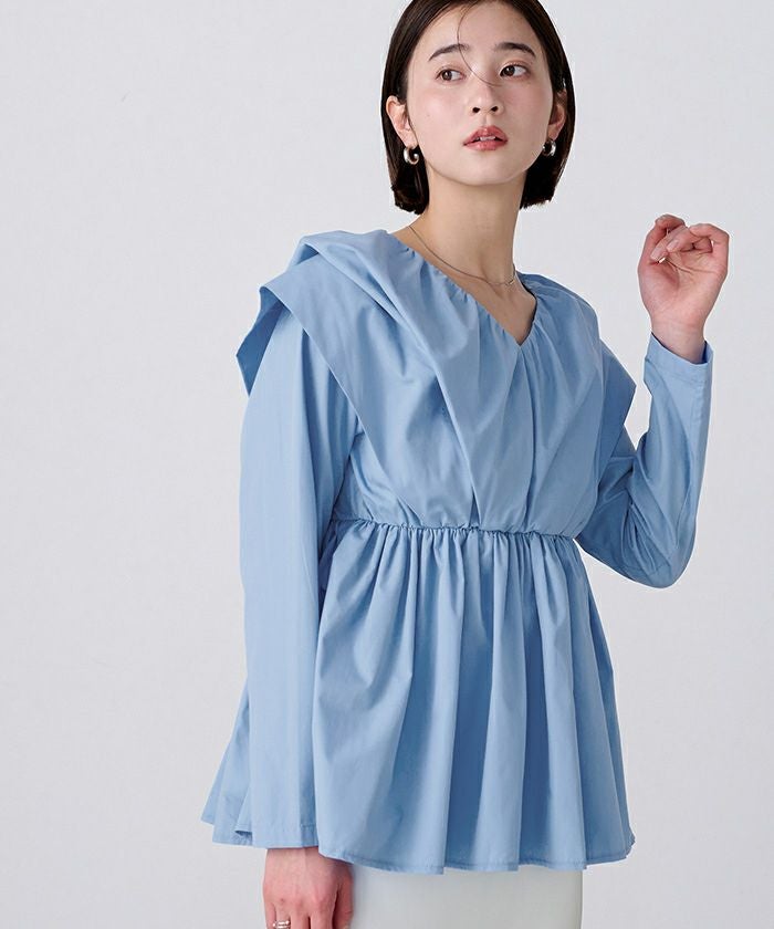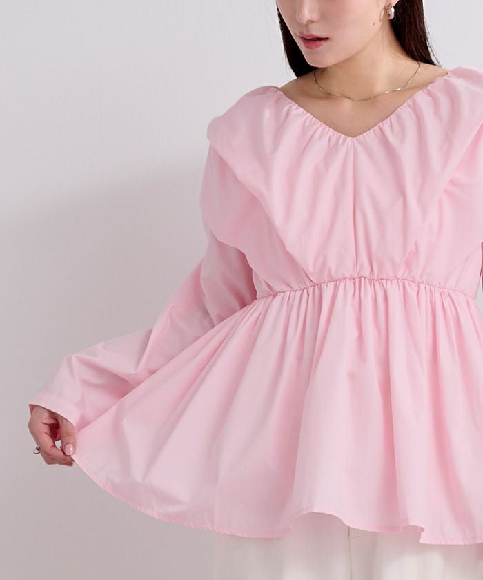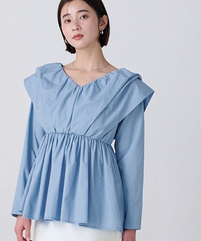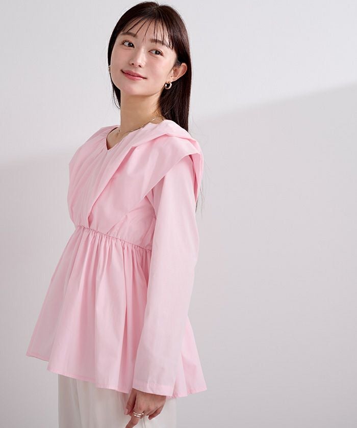 ショルダーにタックを入れ、立体感のある女性らしいシルエットに仕上げたブラウス。