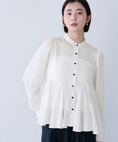 立体的に広がるフレアデザインが目を惹くブラウス。