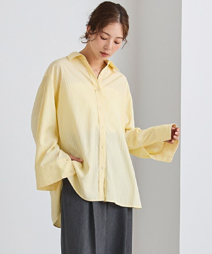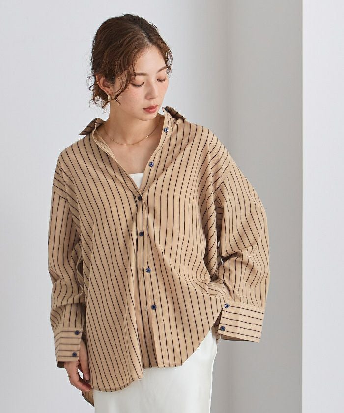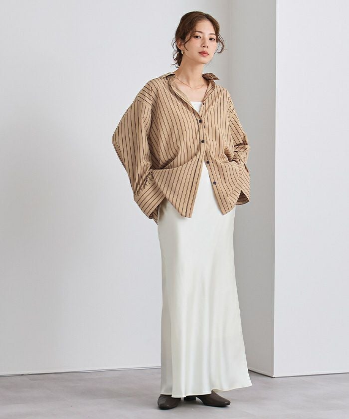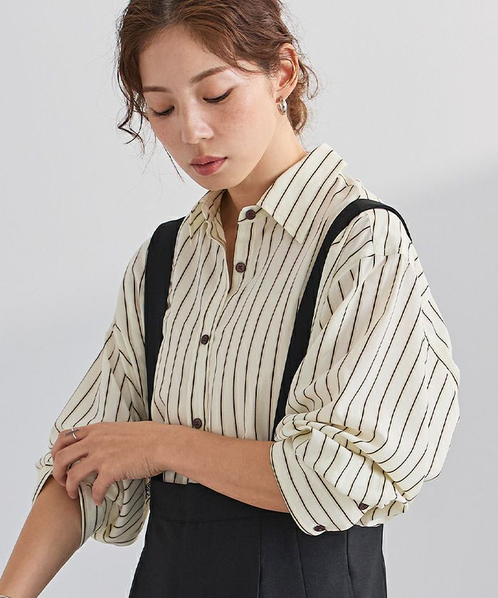 ゆったりとしたオーバーシルエットで、抜け感を演出するストライプシャツ。