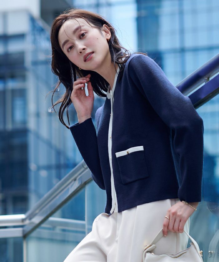 ■【イチ推し】【新色】 胸ポケットニットカーディガン