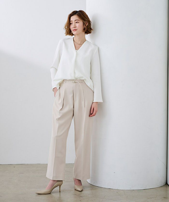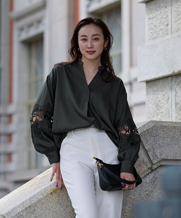 他の画像を見る ■【星玲奈さんコラボアイテム】【洗える】【期間限定★SALE】 ベルト付ノーカラーバルーンスリーブブラウス 定価 ¥ 5,489 のところ 価格 ¥ 4,391 税込 お気に入りに登録する