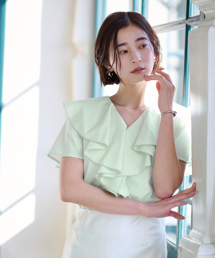 他の画像を見る 【星玲奈さんコラボアイテム】【セットアップ可能】【セレモニーアイテム】【洗える】【期間限定★SALE】 タックフレアスリーブトップス 定価 ¥ 5,489 のところ 価格 ¥ 4,391 税込 お気に入りに登録する