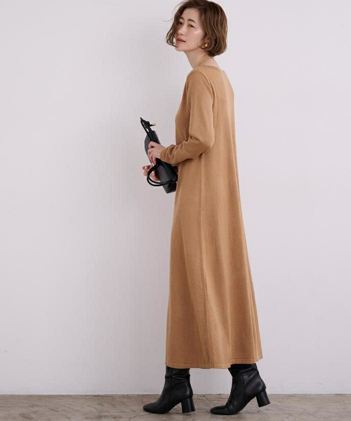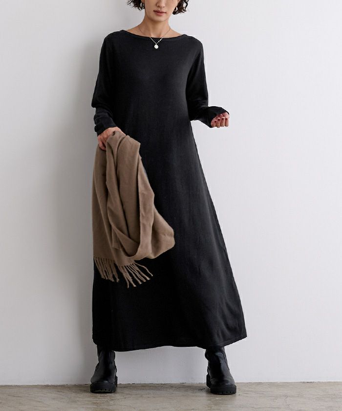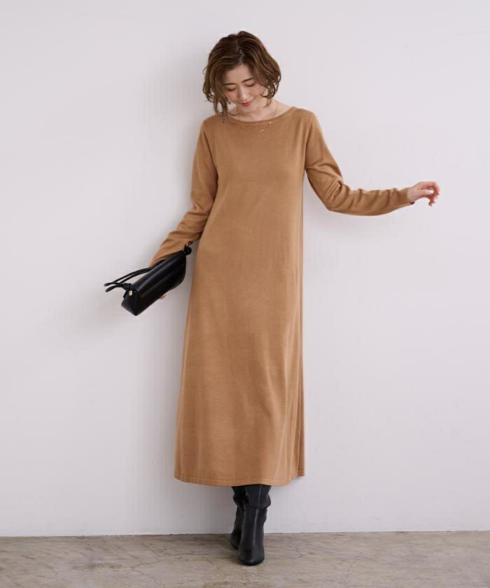 【新色】【期間限定★3500均一】 ボートネックロングニットワンピース