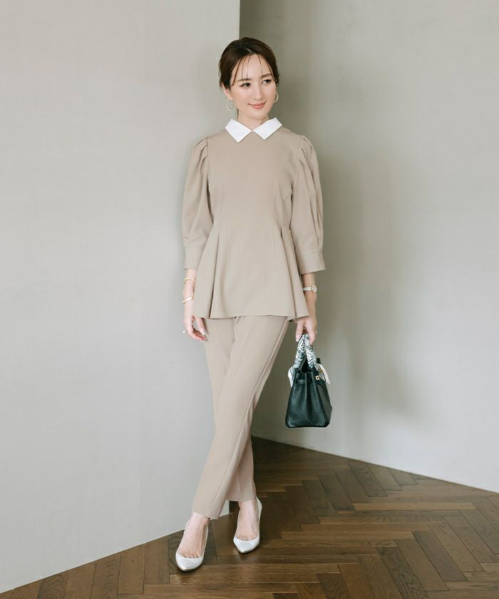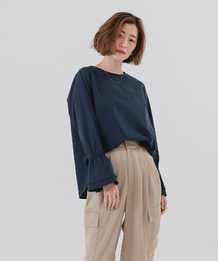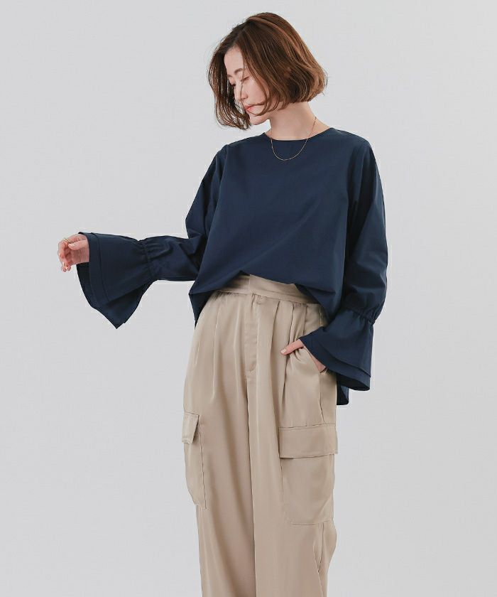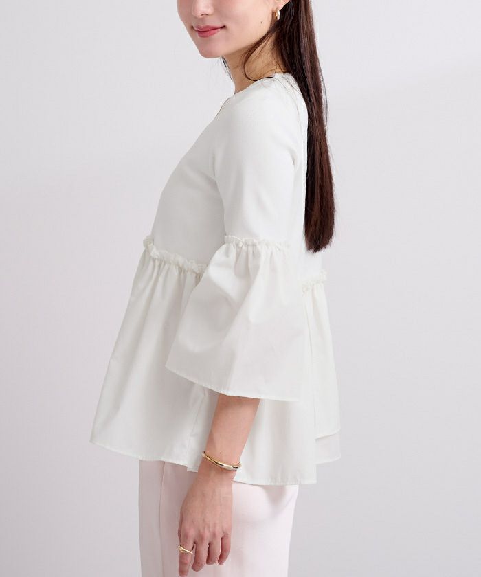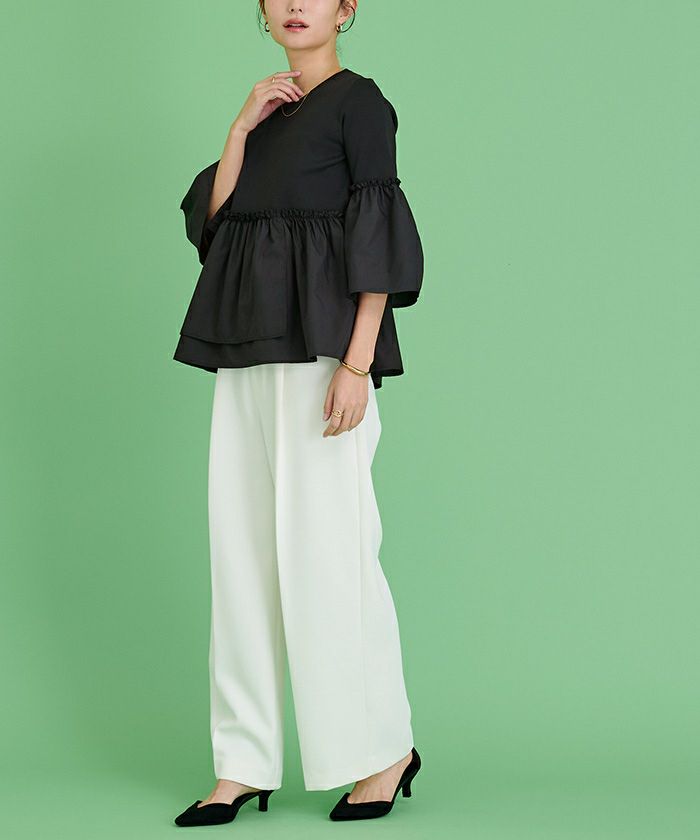 【星玲奈さんコラボアイテム】【セットアップ可能】【セレモニーアイテム】【洗える】【期間限定★SALE】 タックフレアスリーブトップス