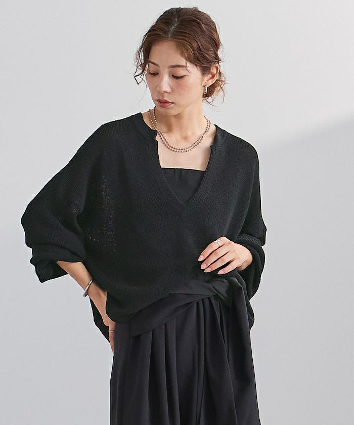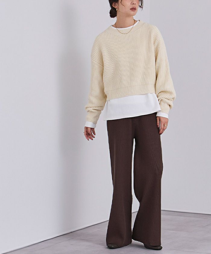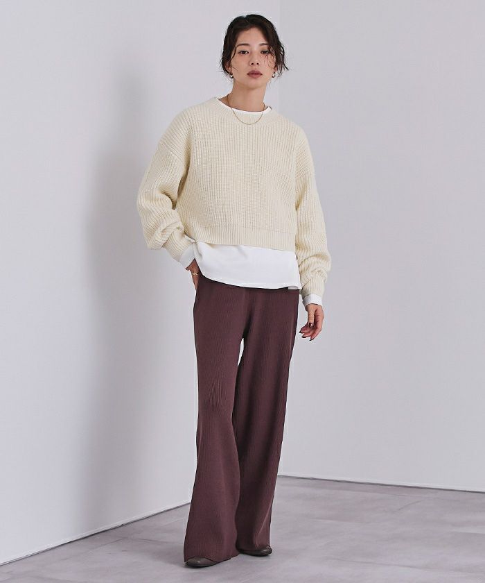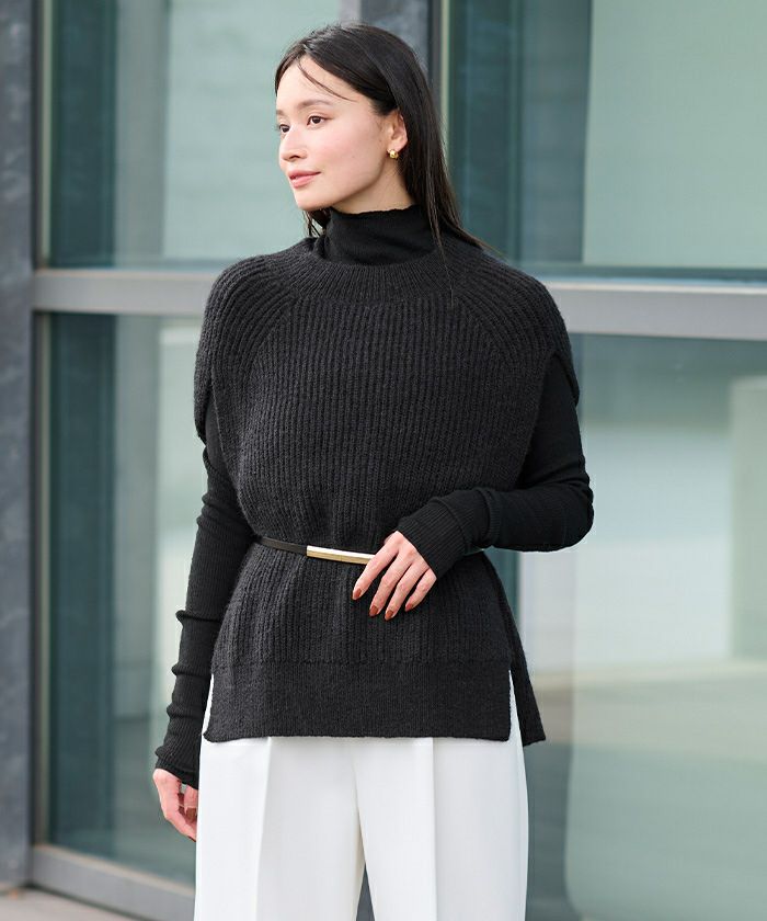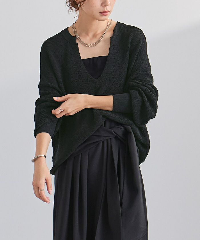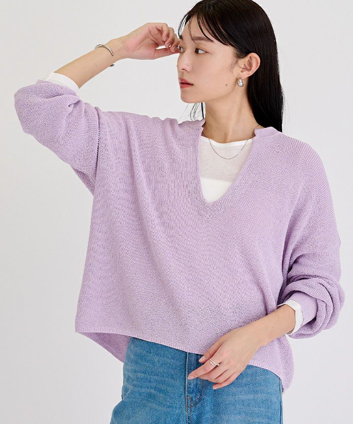 □【小林有里さんコラボアイテム】【新色】 袖スリットクルーネックニット【メール便可/100】