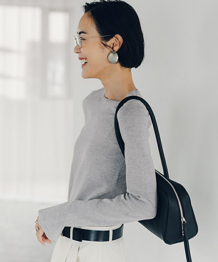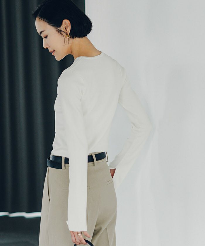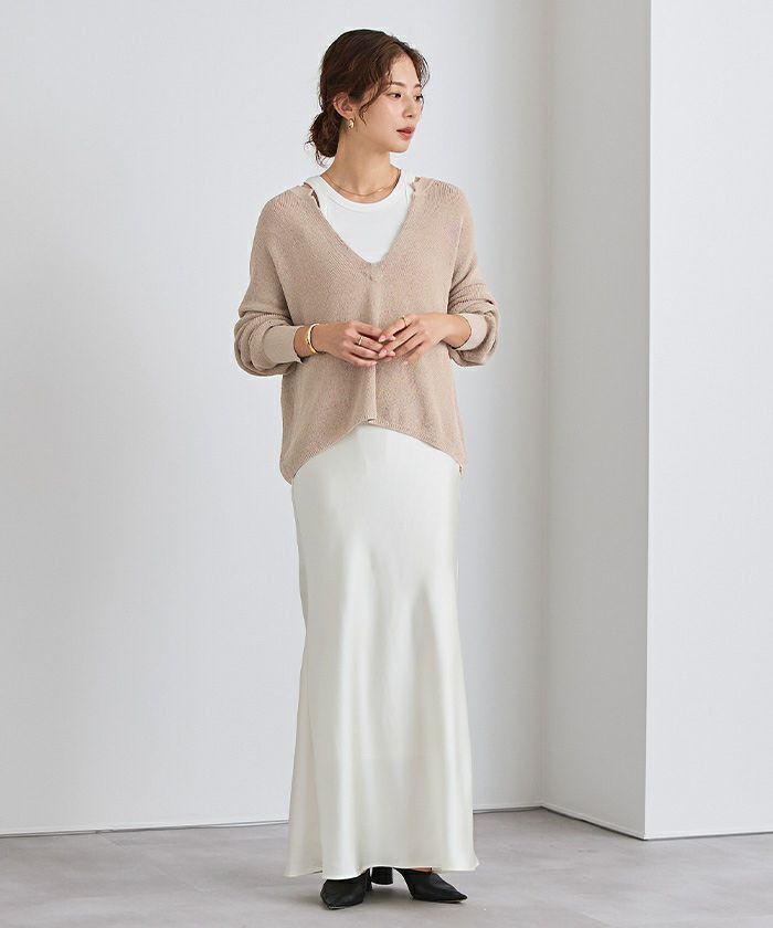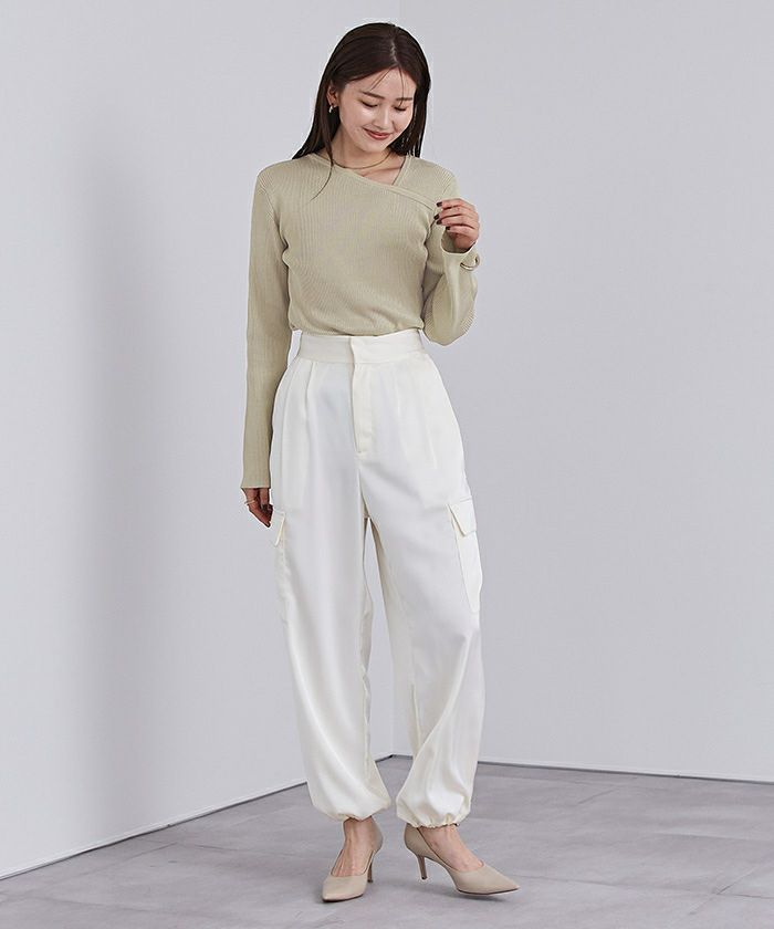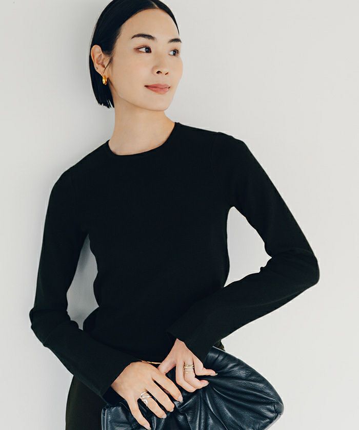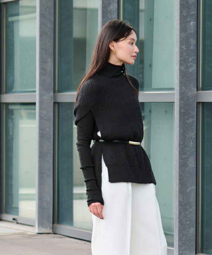 □【小林有里さんコラボアイテム】【新色】 袖スリットクルーネックニット【メール便可/100】