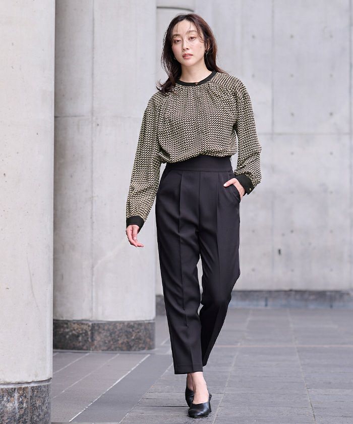 □【洗える】【期間限定★SALE】 ハイウエストタックテーパードパンツ