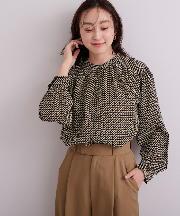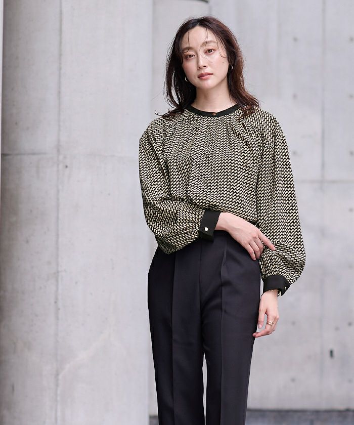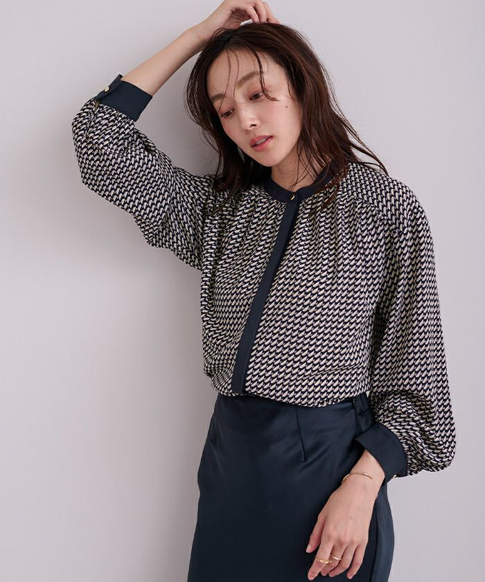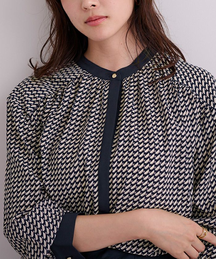 □【期間限定★3900均一】 ジオメトリックバンドカラーブラウス【メール便可/60】