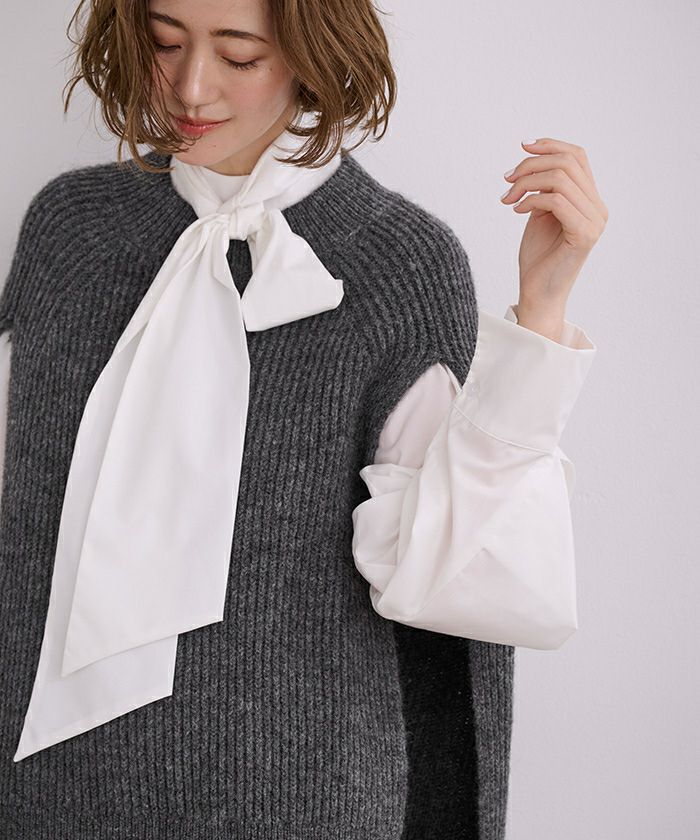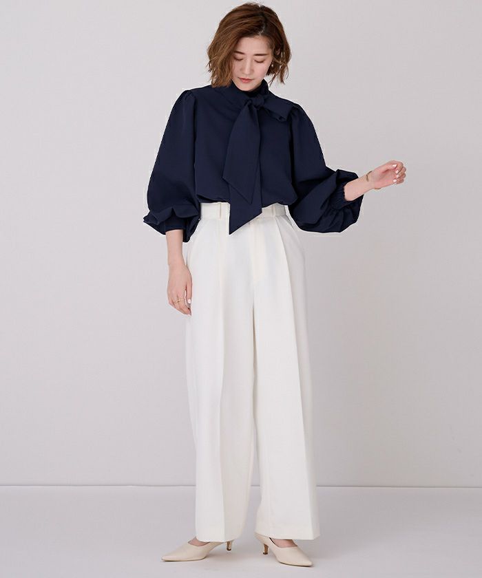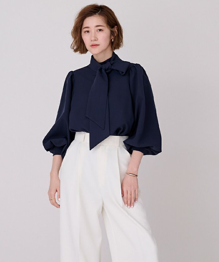 □【星玲奈さんコラボアイテム】【セレモニーアイテム】【洗える】【新色】 2wayボリュームスリーブボウタイブラウス