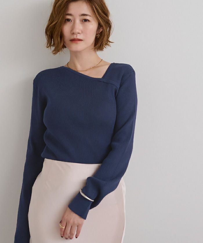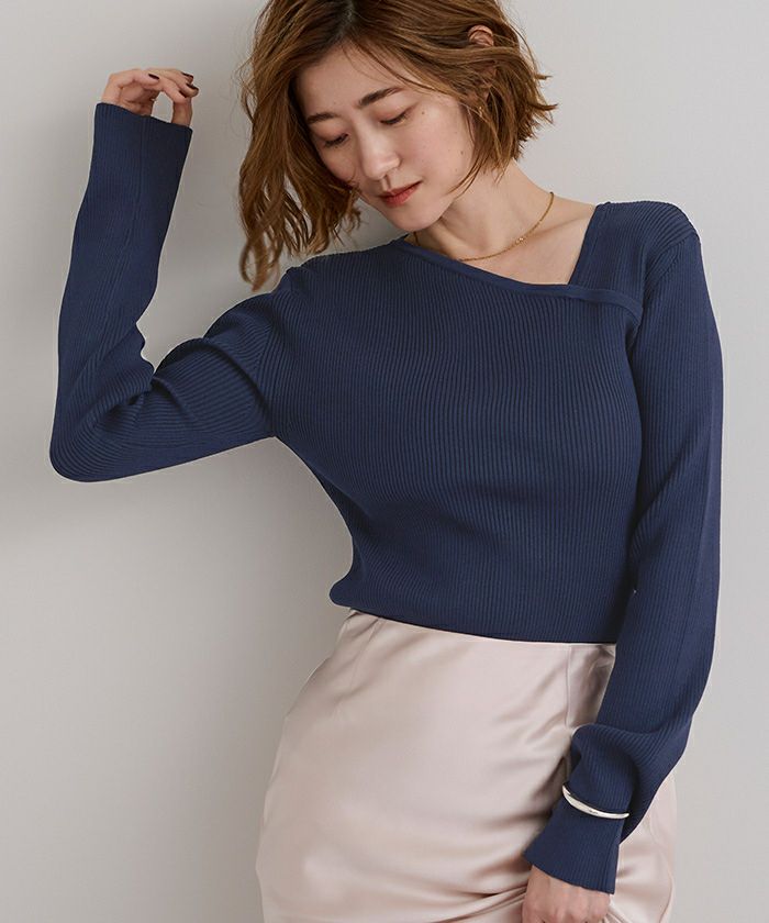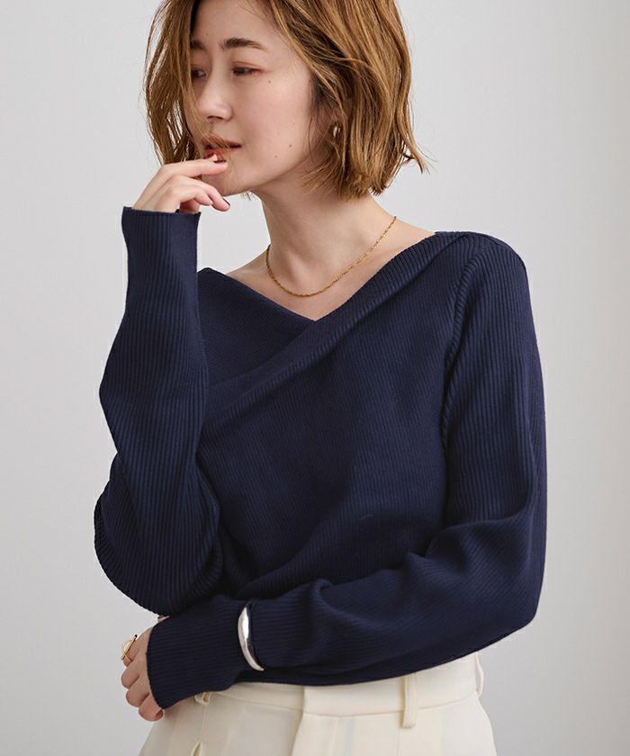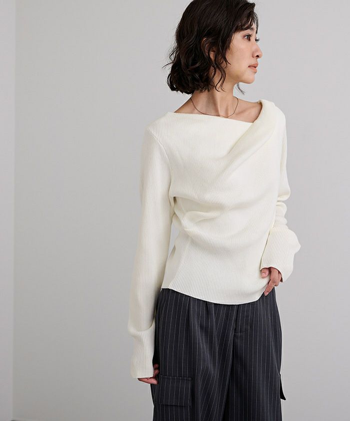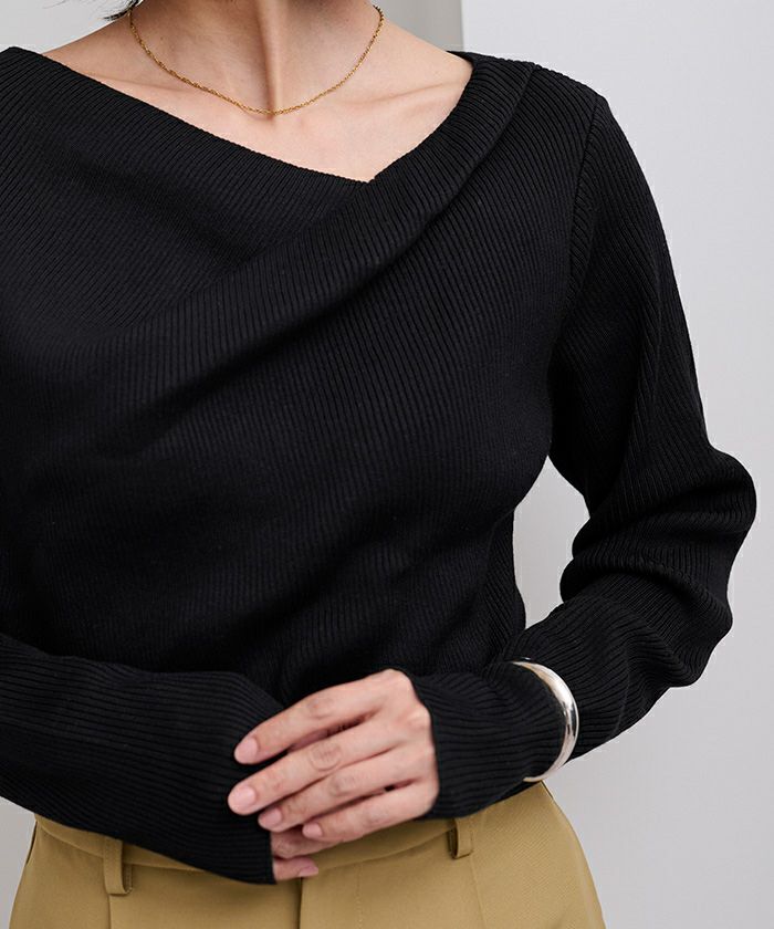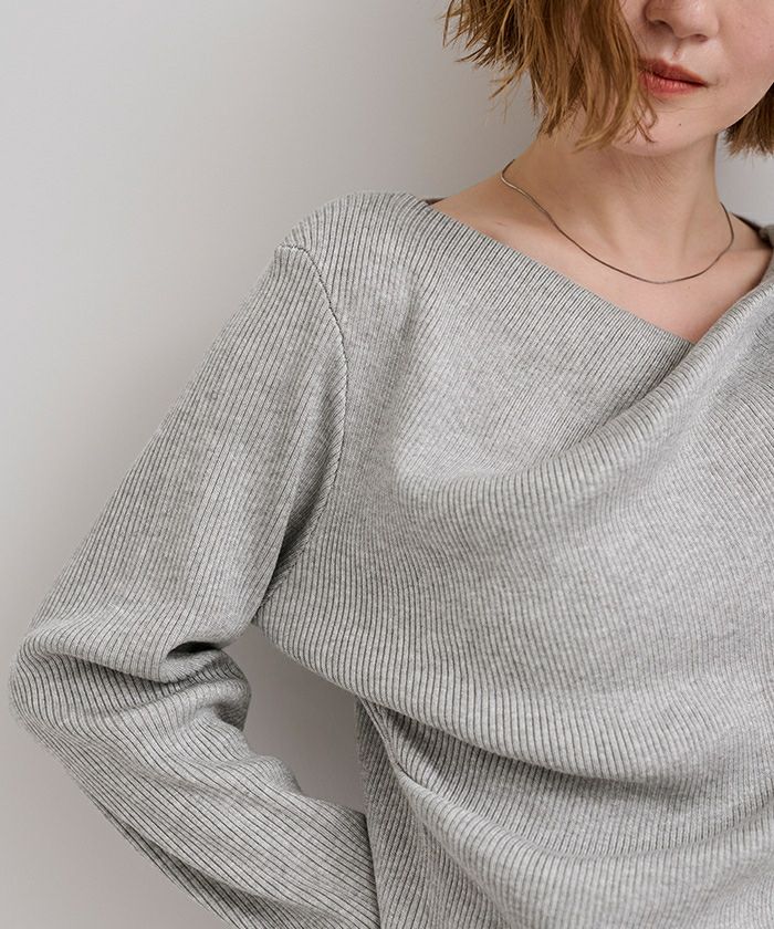 □【期間限定★2500均一】 アシンメトリーネックリブニット【メール便可/100】