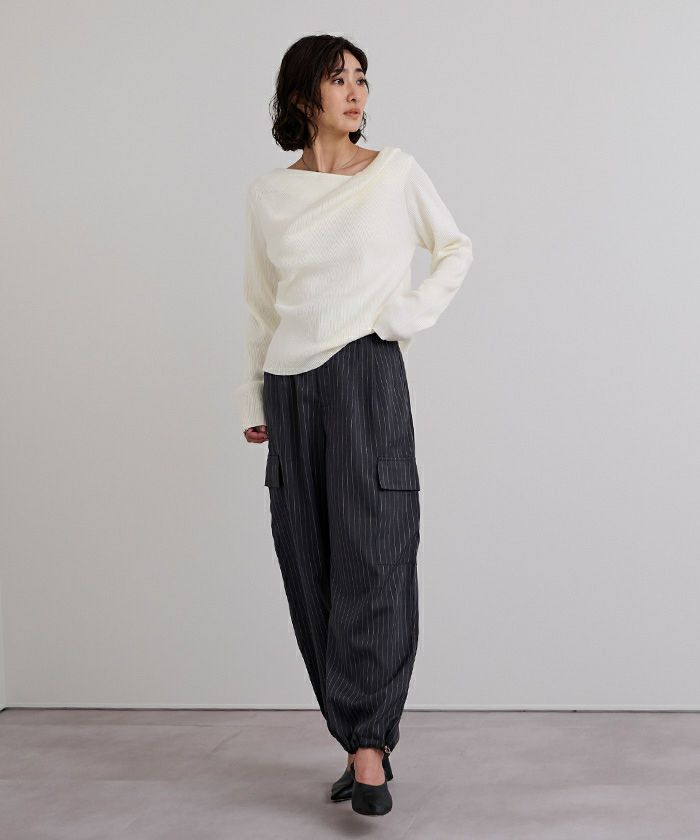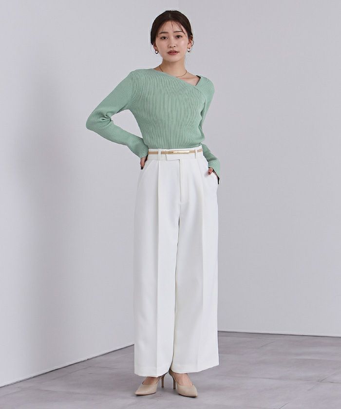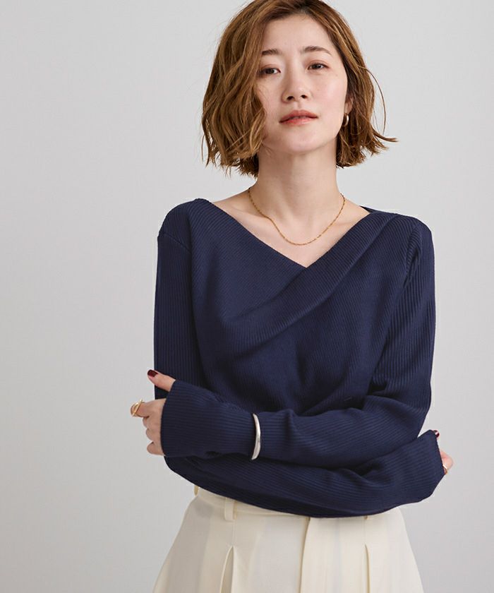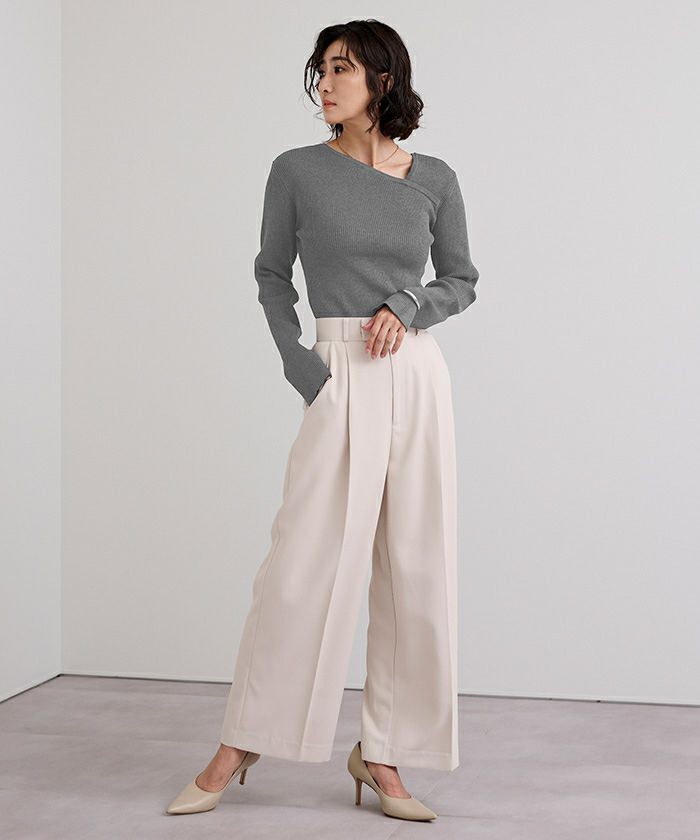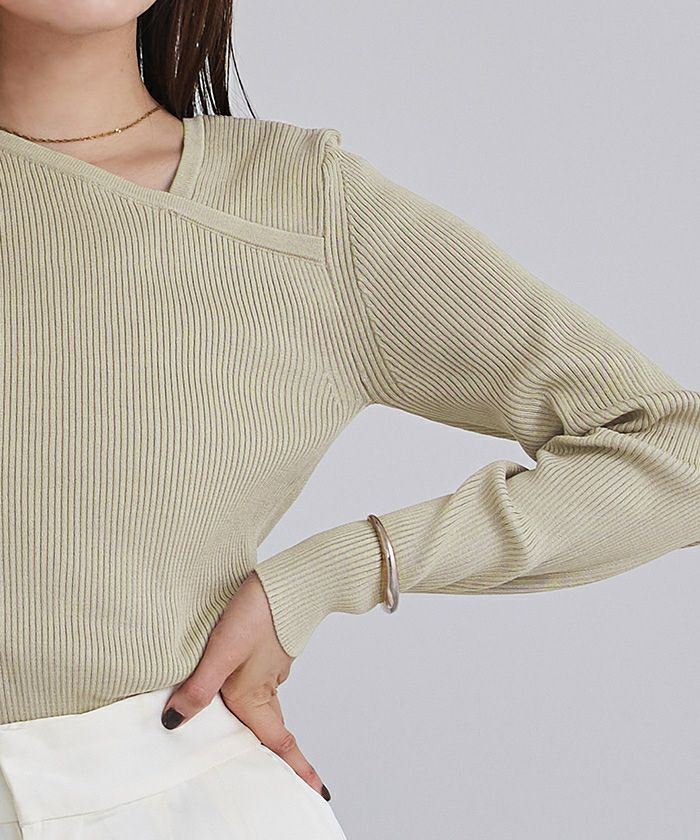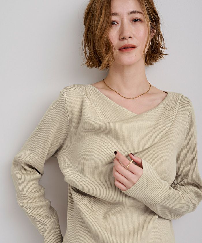 □【期間限定★2500均一】 アシンメトリーネックリブニット【メール便可/100】