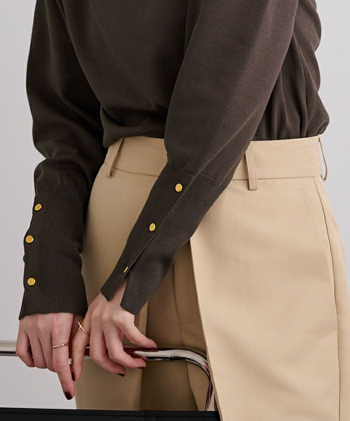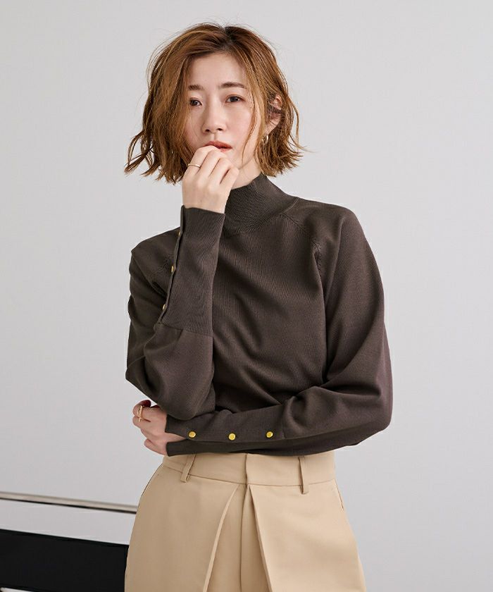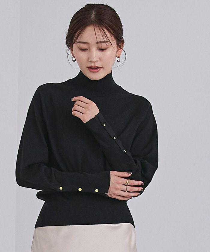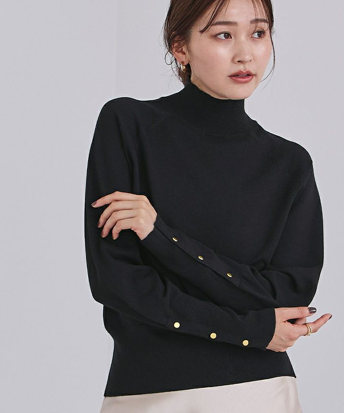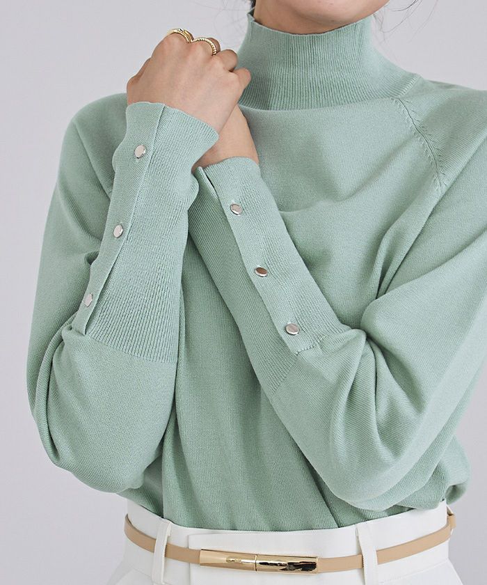 【期間限定★3900均一】 ハイネックゴールド釦ラグランスリーブニット