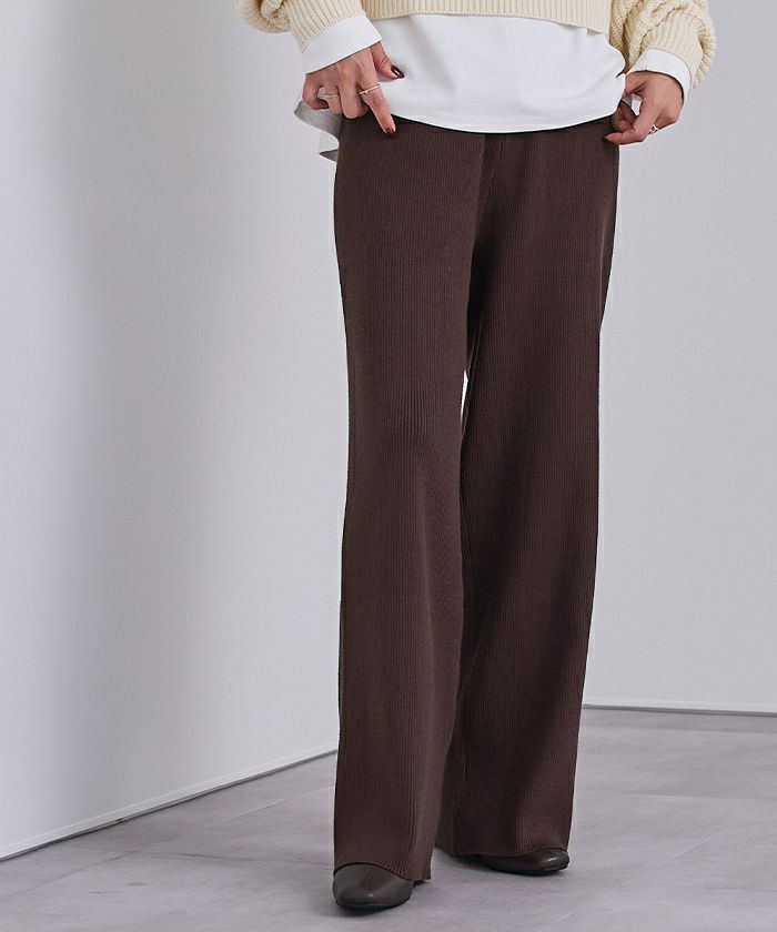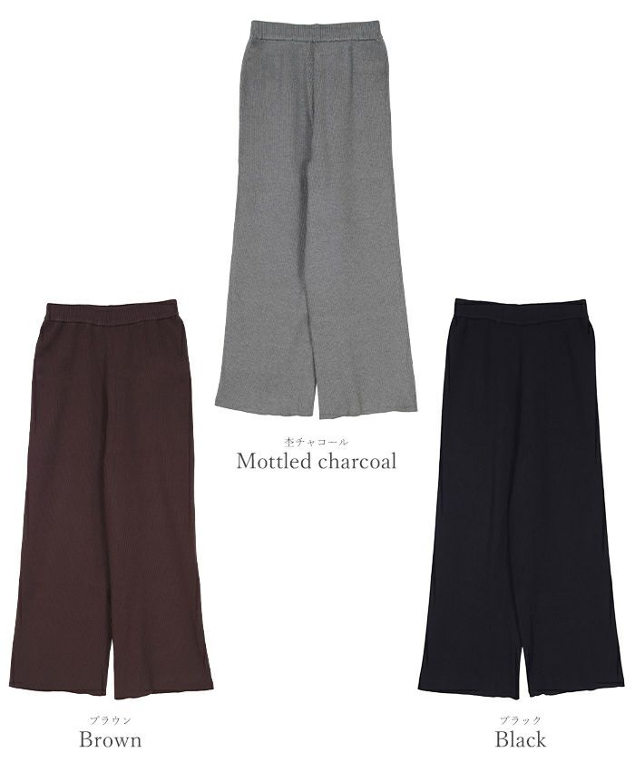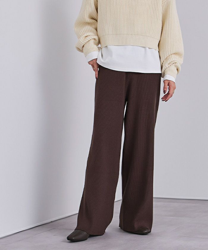 【期間限定★2500均一】 リラックスリブニットワイドパンツ