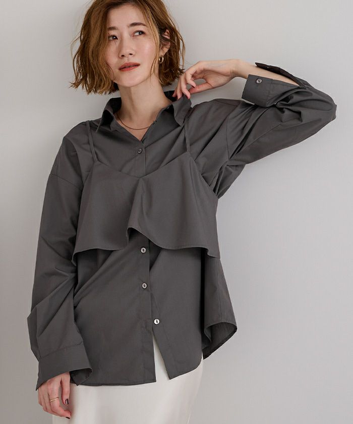 □【洗える】【期間限定★3500均一】 フレアキャミ付シャツ