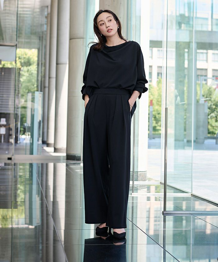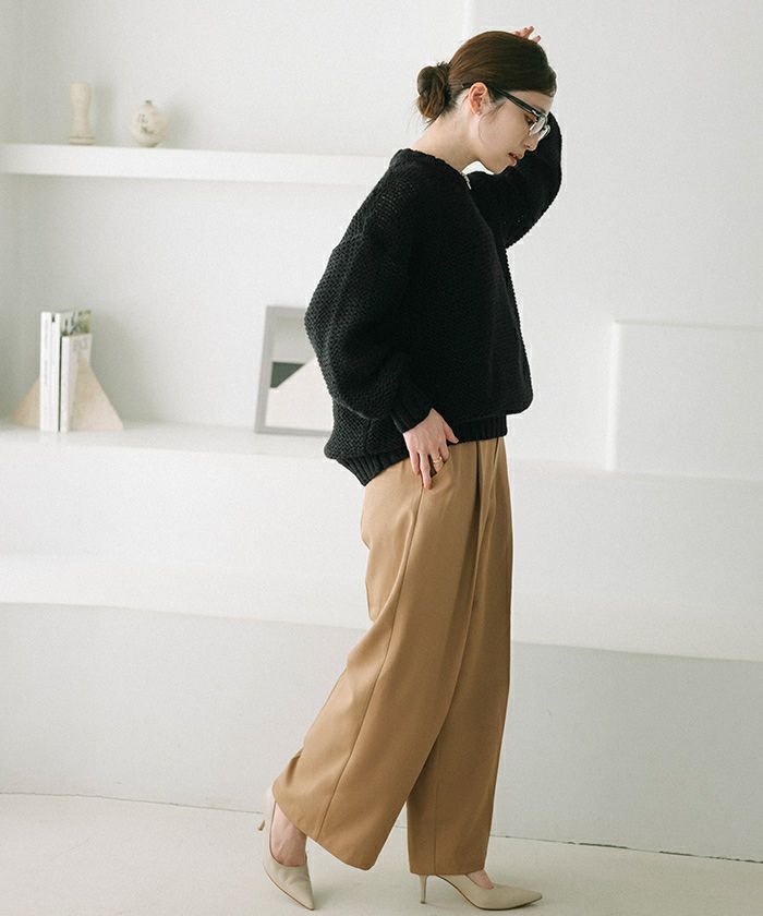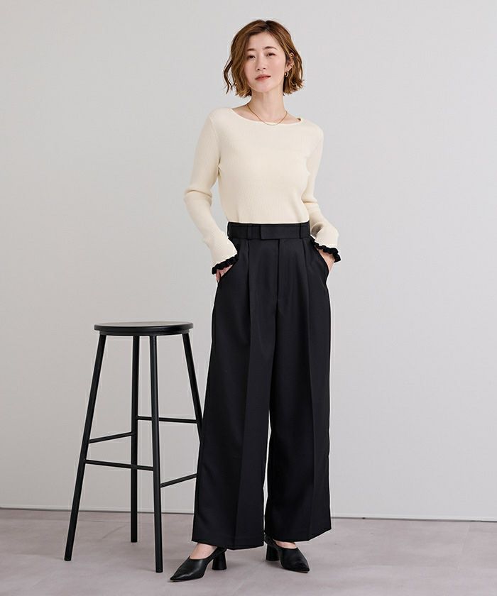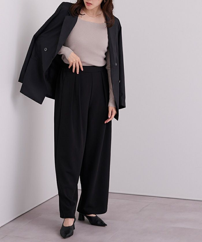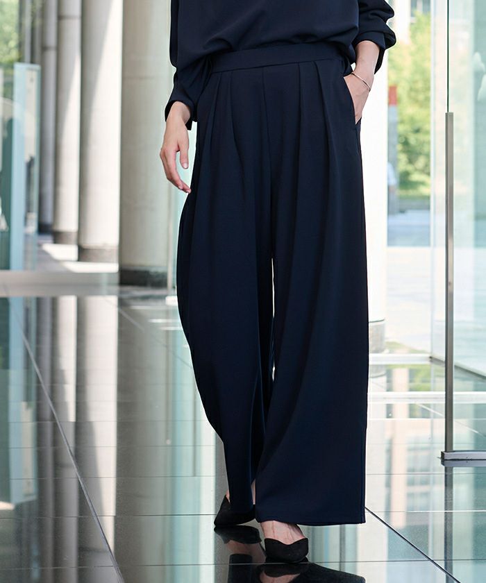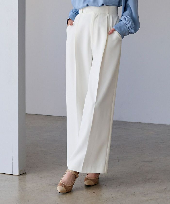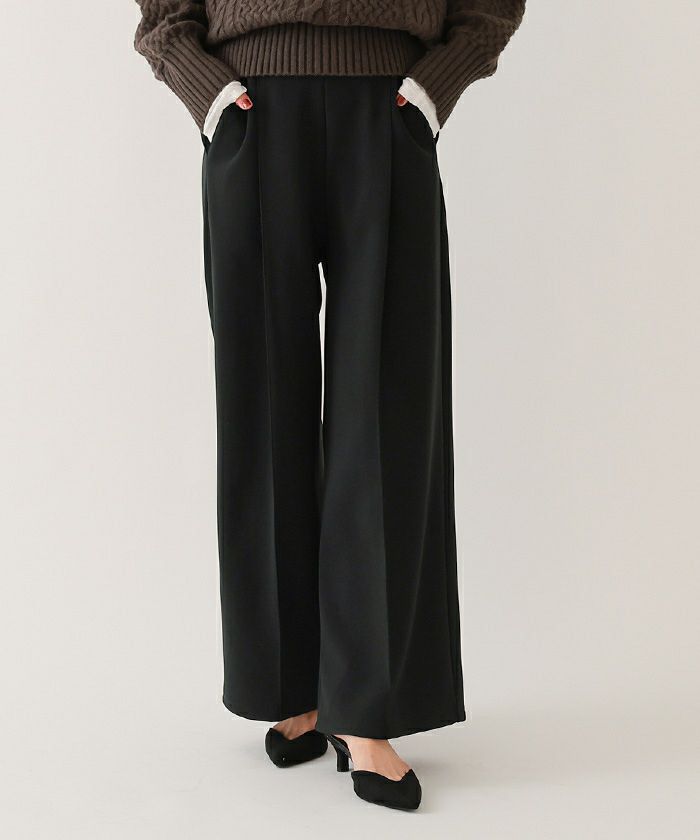 □【小林有里さんコラボアイテム】【高身長さん向けサイズ有り】 ピンタックセンタープレスワイドパンツ