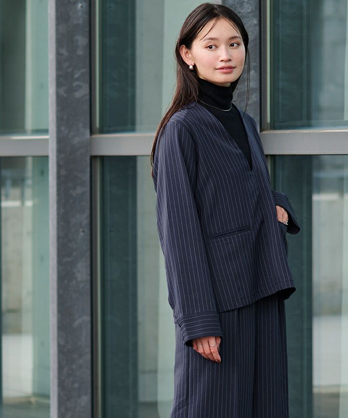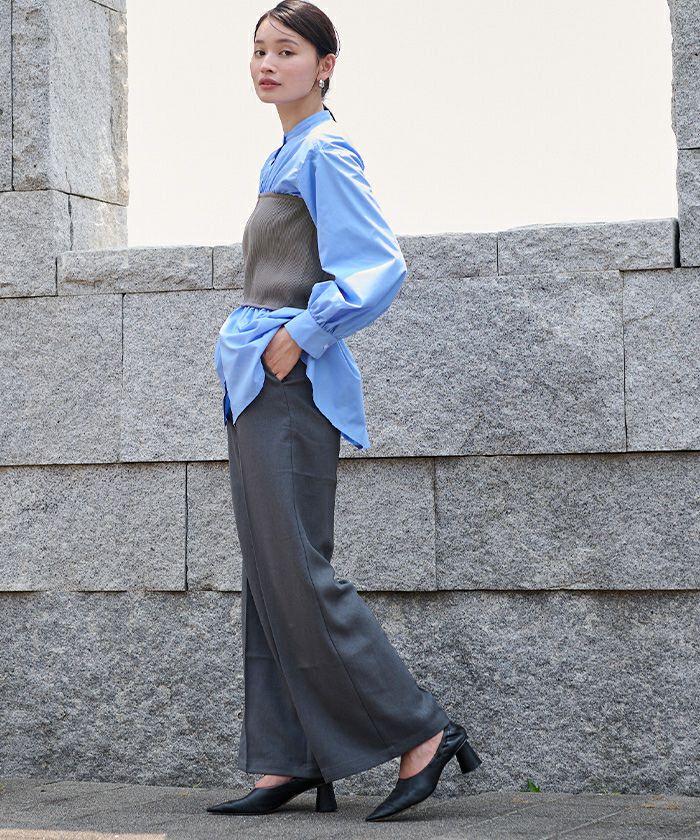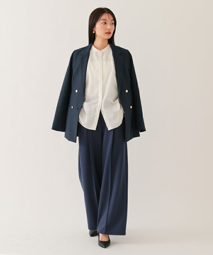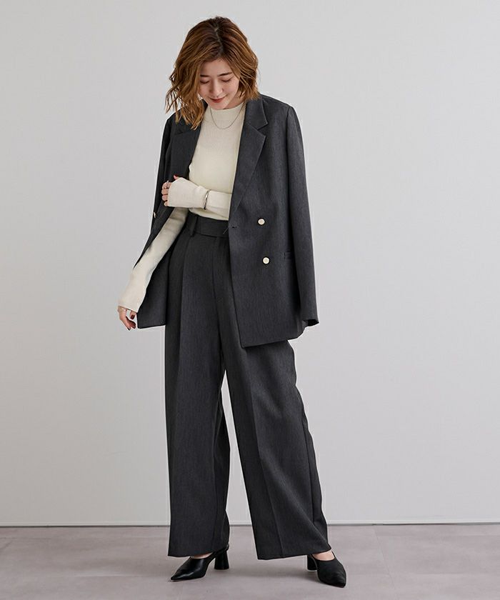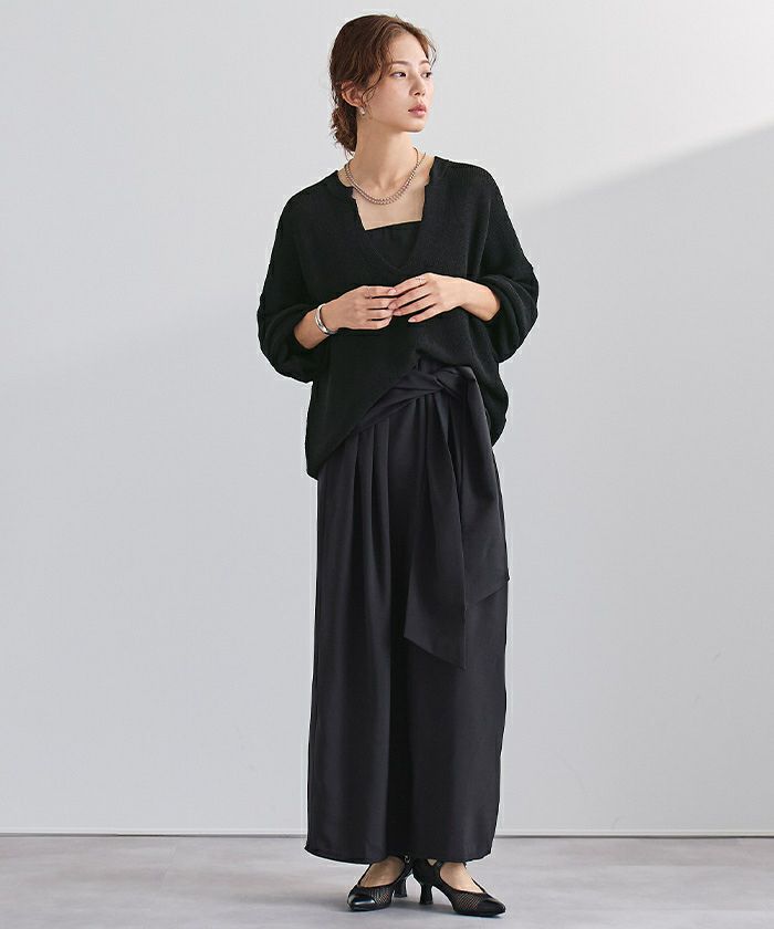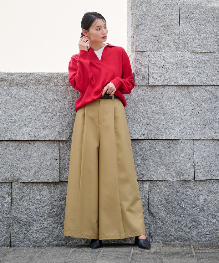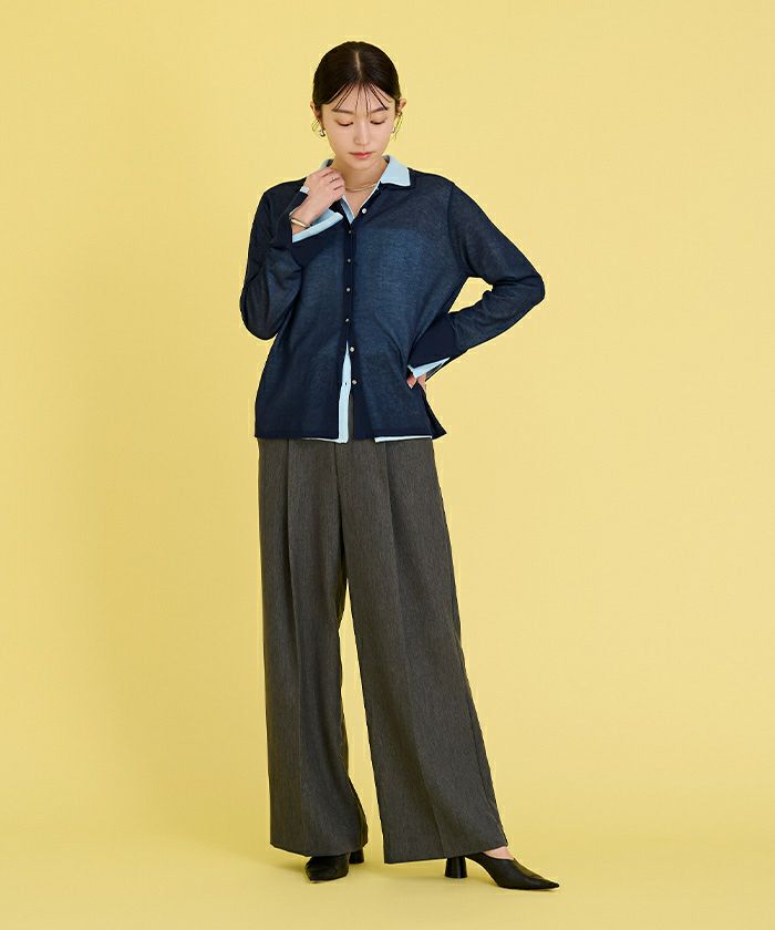 □【小林有里さんコラボアイテム】【高身長さん向けサイズ有り】 ピンタックセンタープレスワイドパンツ