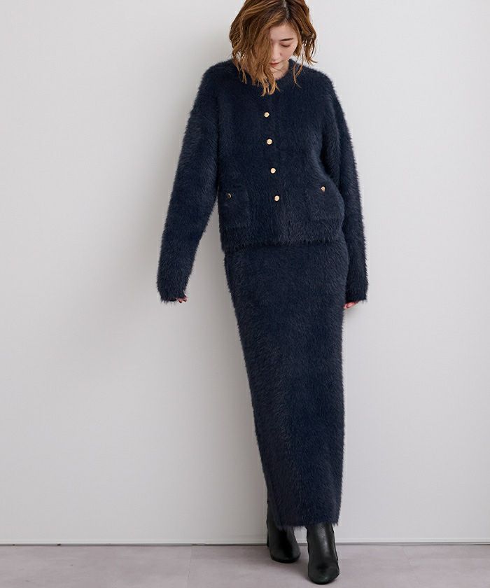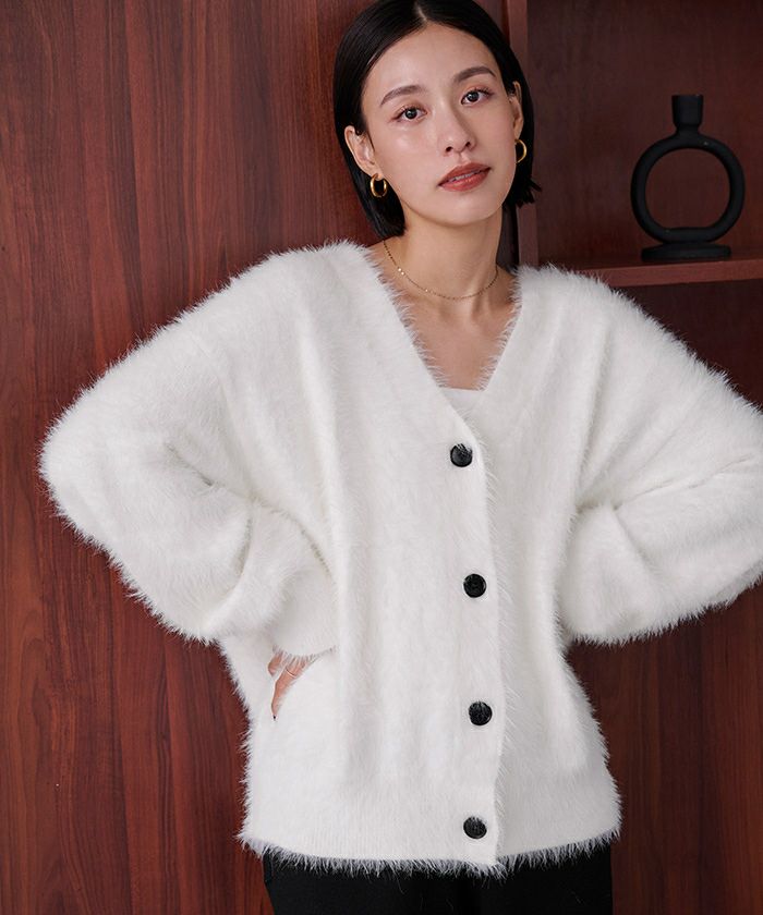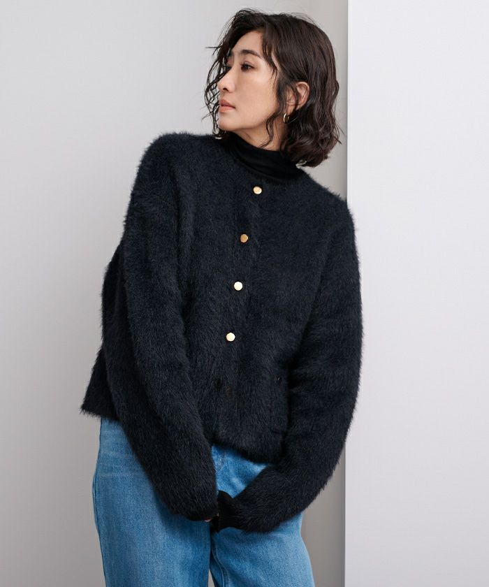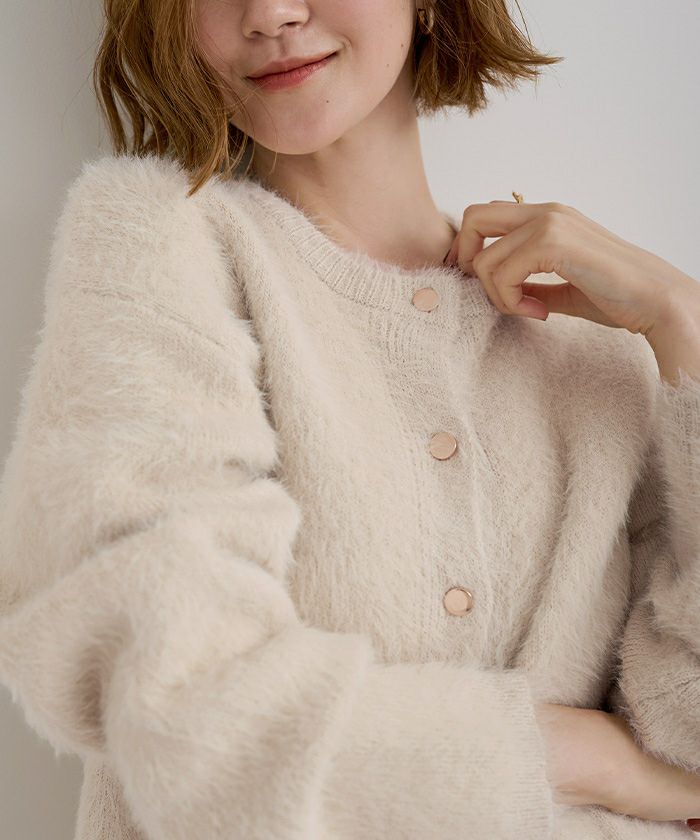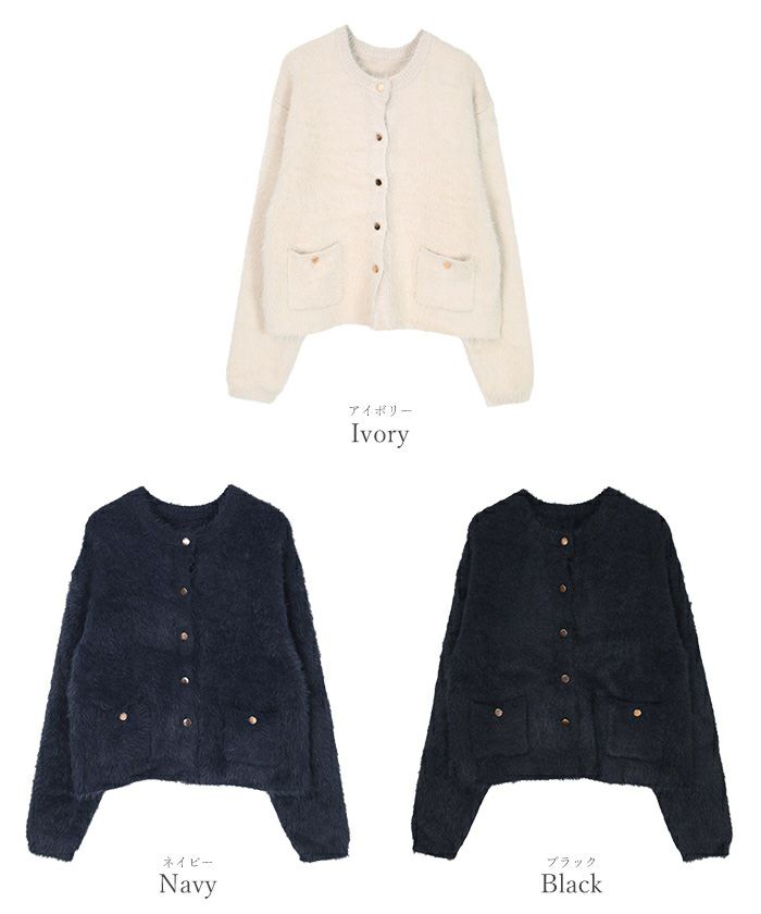 【セットアップ可能】【期間限定★3000均一】 ゴールド釦シャギーニットカーディガン