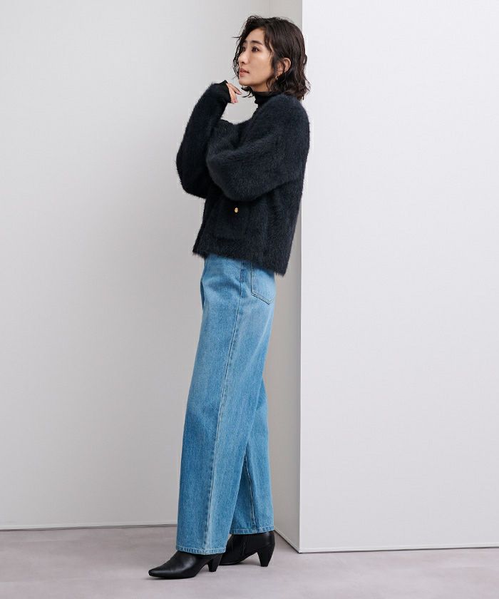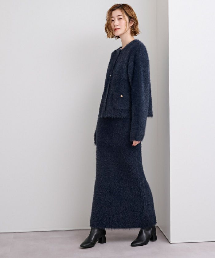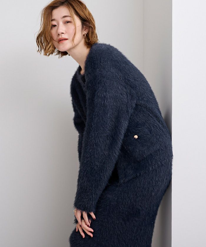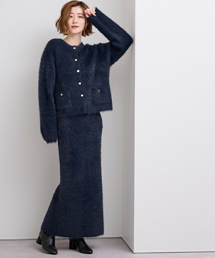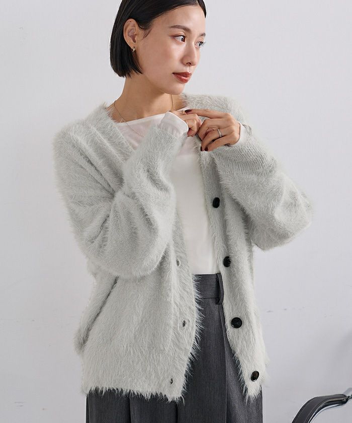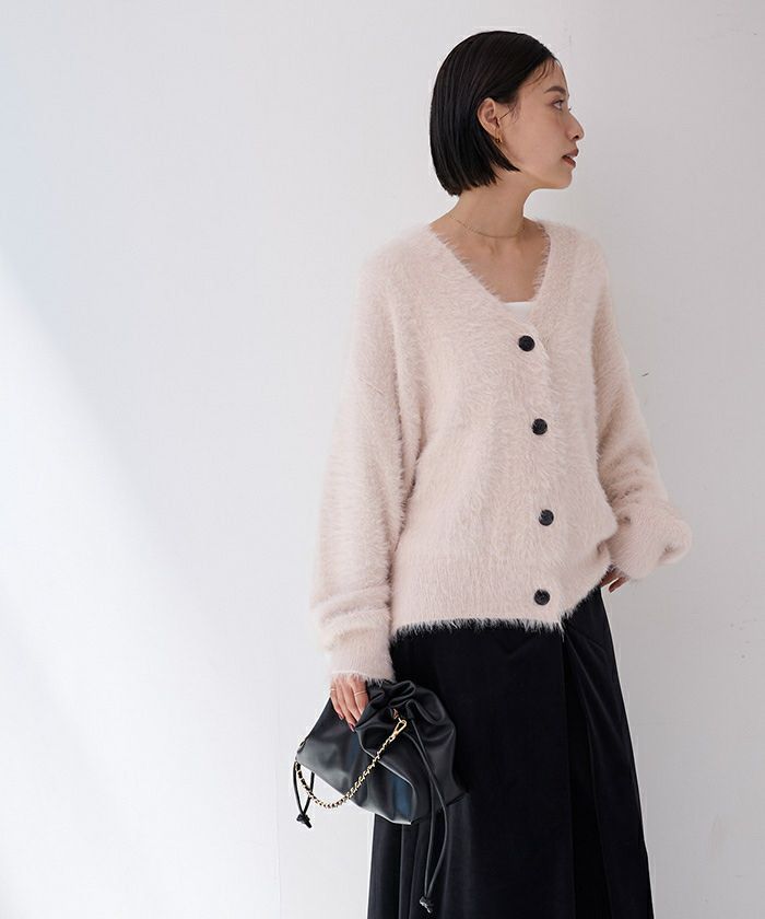 【セットアップ可能】【期間限定★3000均一】 ゴールド釦シャギーニットカーディガン