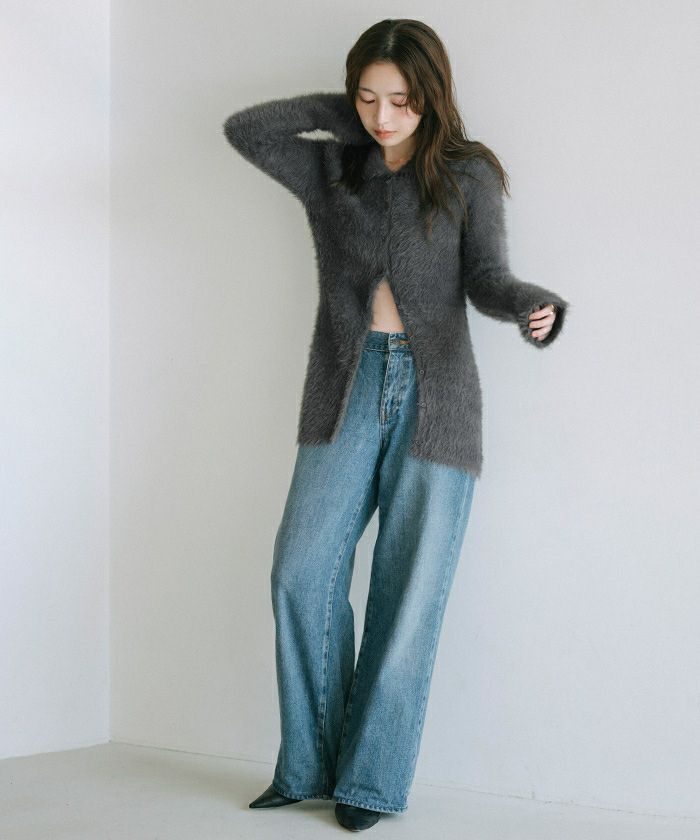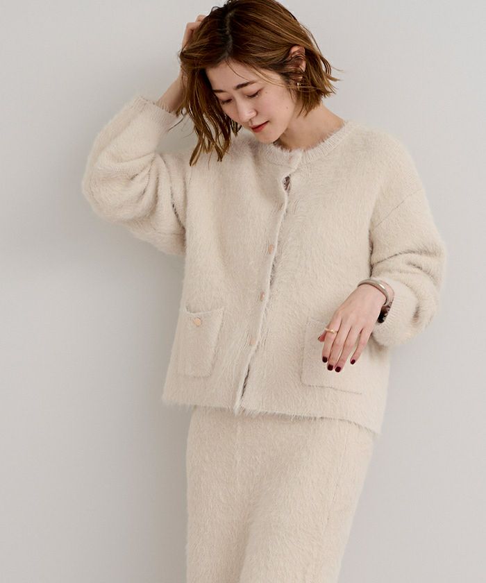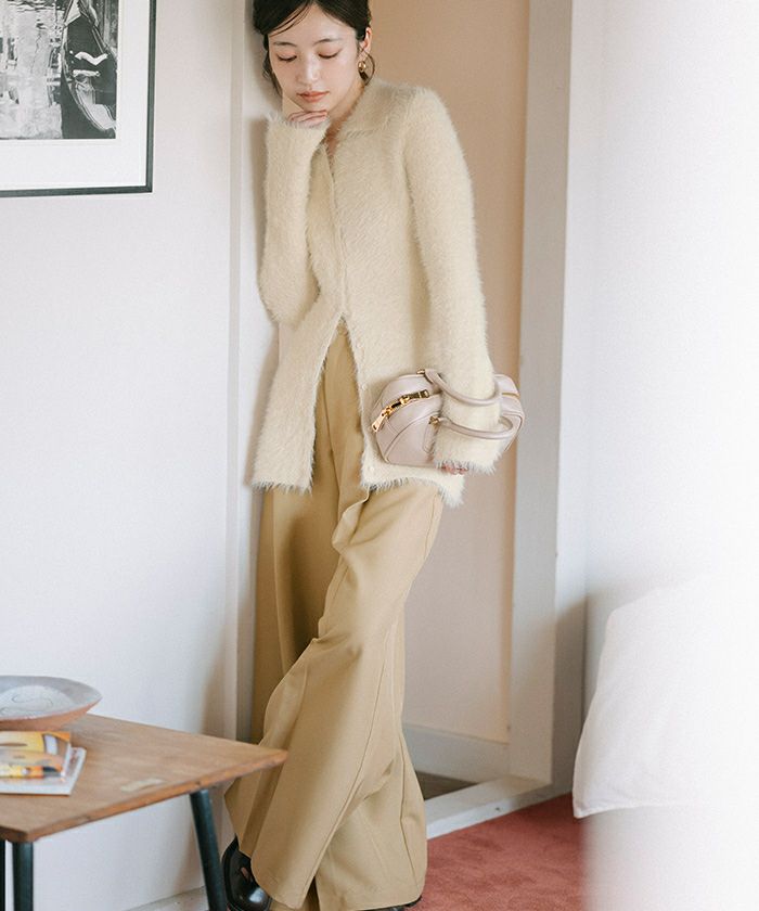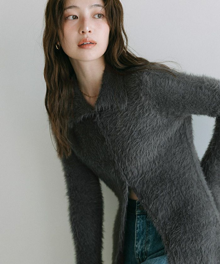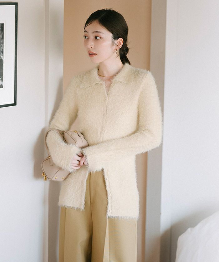 【yukiさんコラボアイテム】【洗える】【期間限定★3500均一】 襟付きシャギーニットカーディガン