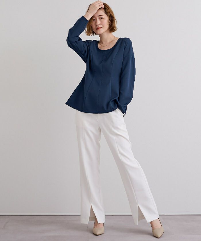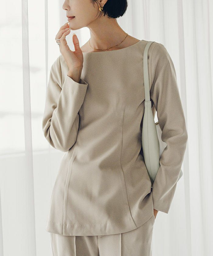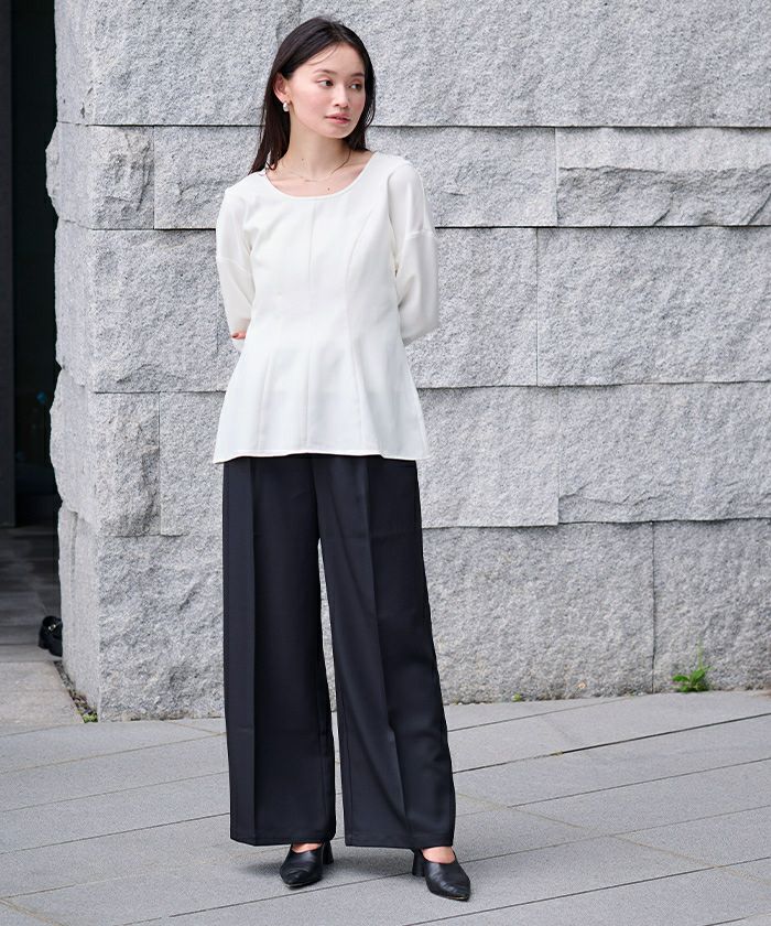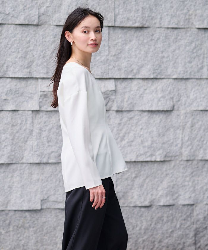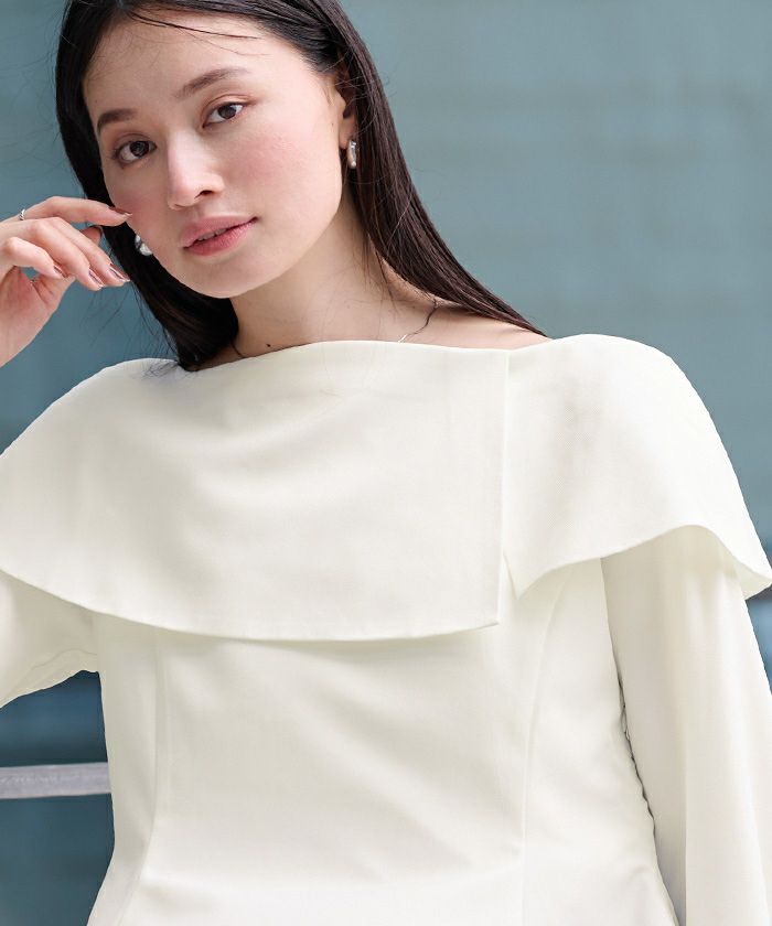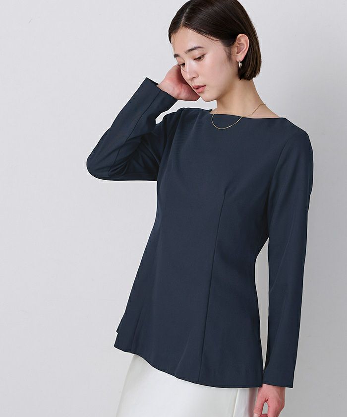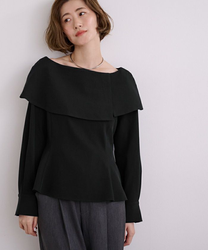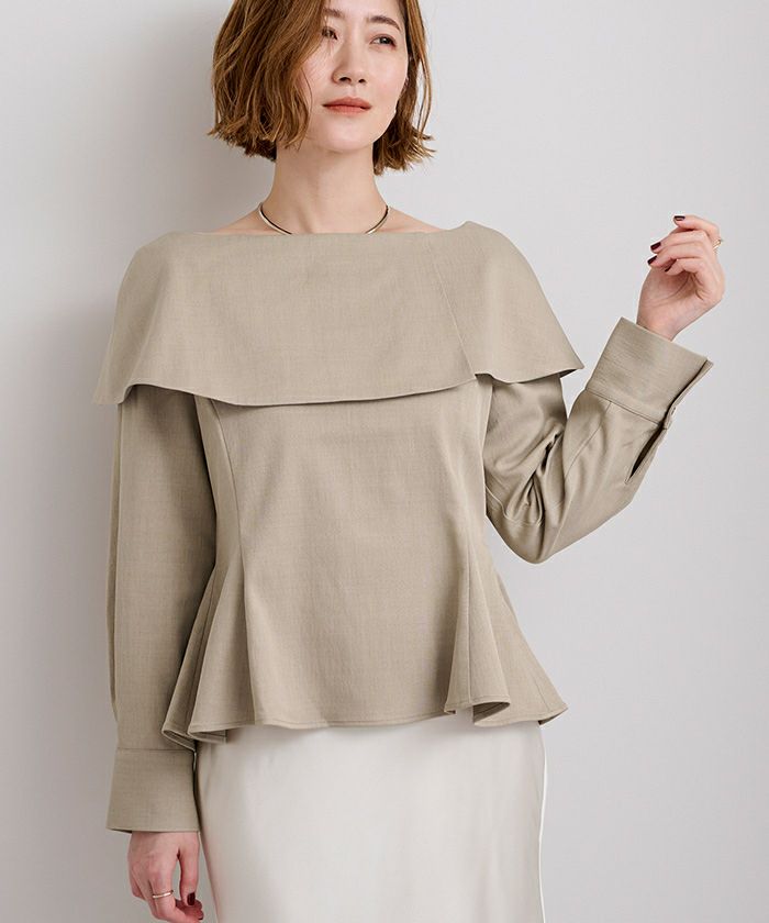 □【小林有里さんコラボアイテム】【期間限定★SALE】 ボートネックペプラムブラウス