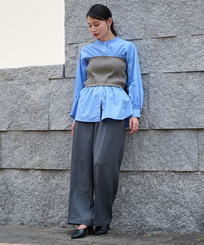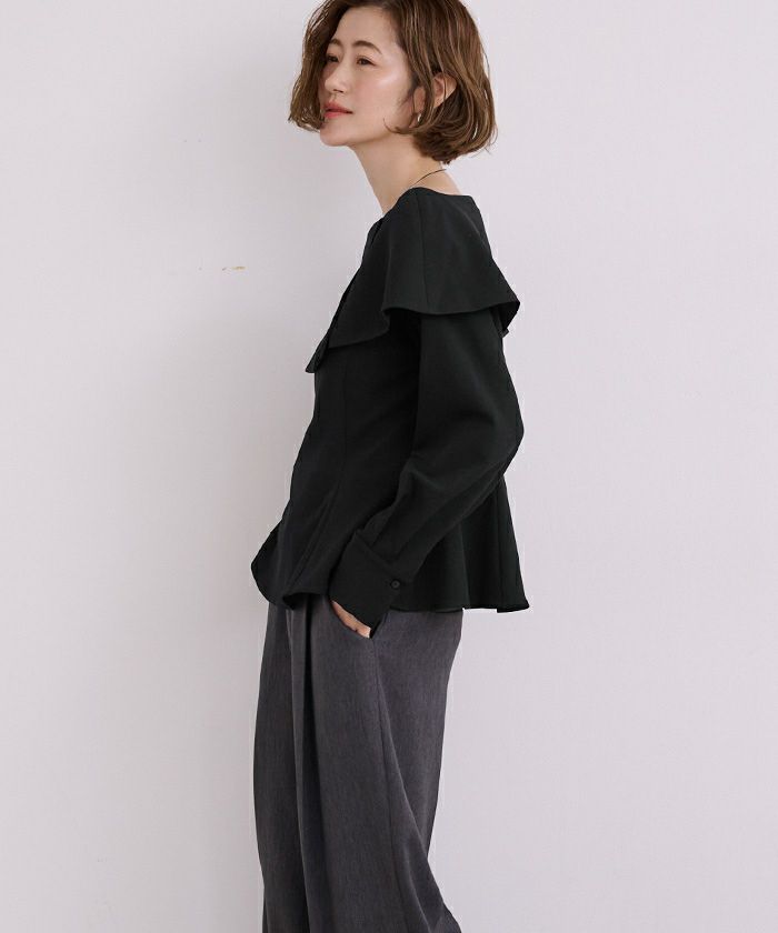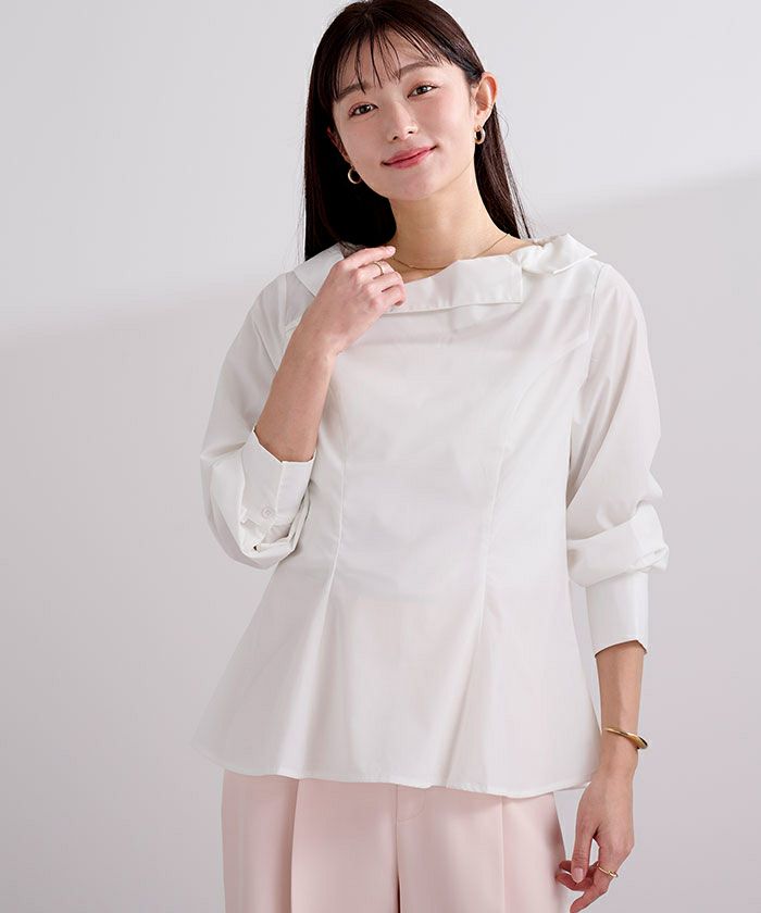 □【セレモニーアイテム】【期間限定★SALE】 バンドカラーペプラムシャツ