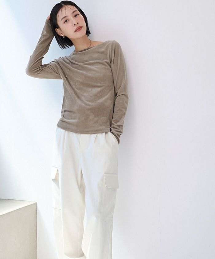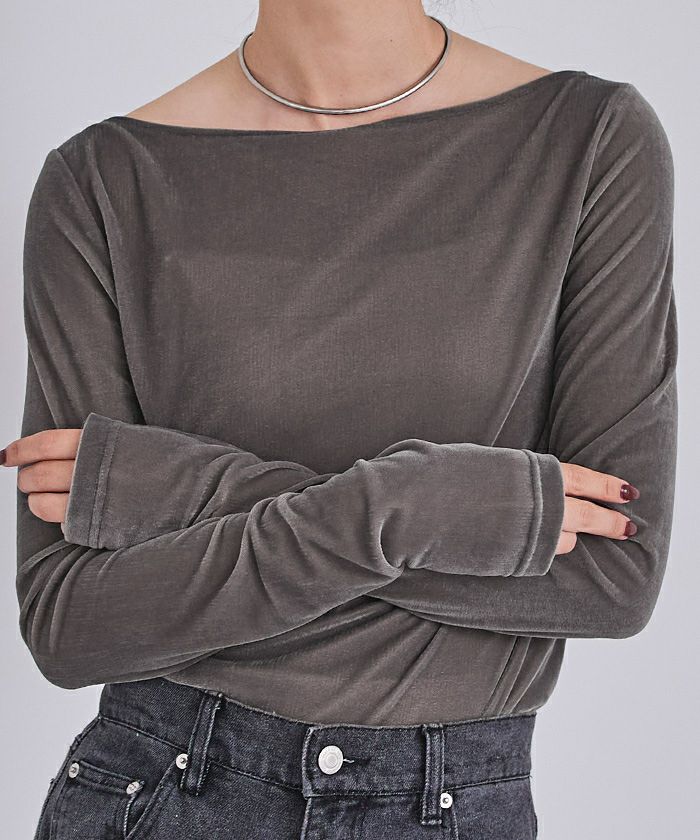 【黒川翼さんコラボアイテム】【期間限定★2500均一】 2wayボートネックベロアトップス【メール便可/100】