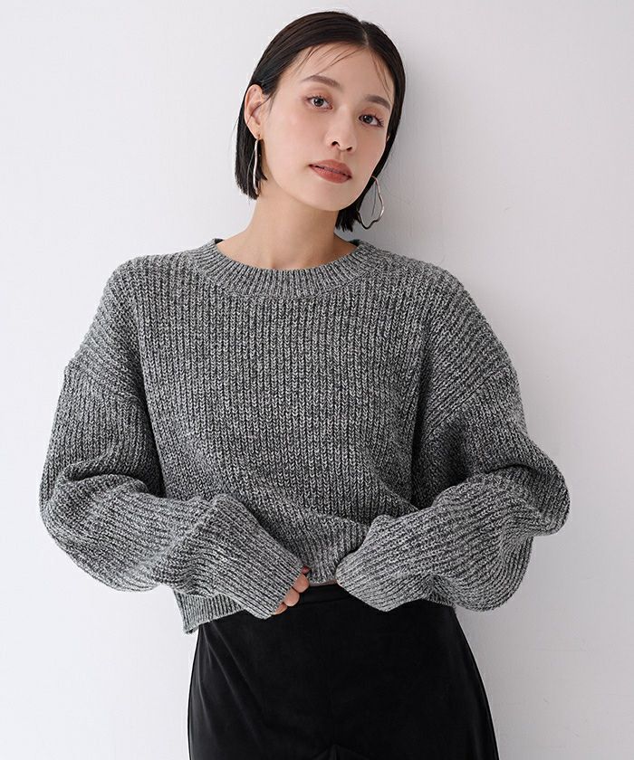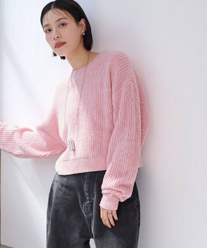 【黒川翼さんコラボアイテム】【期間限定★1500均一】 クルーネッククロップドニット