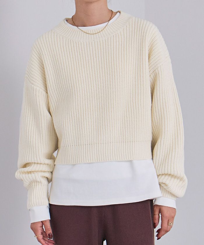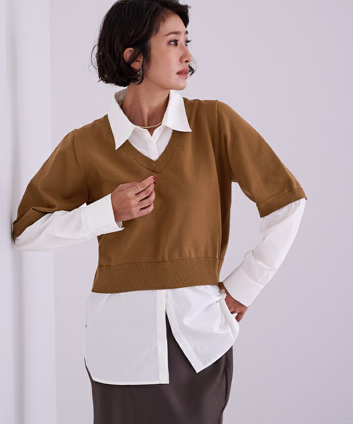 □【期間限定★3900均一】 シャツドッキングハーフスリーブニット