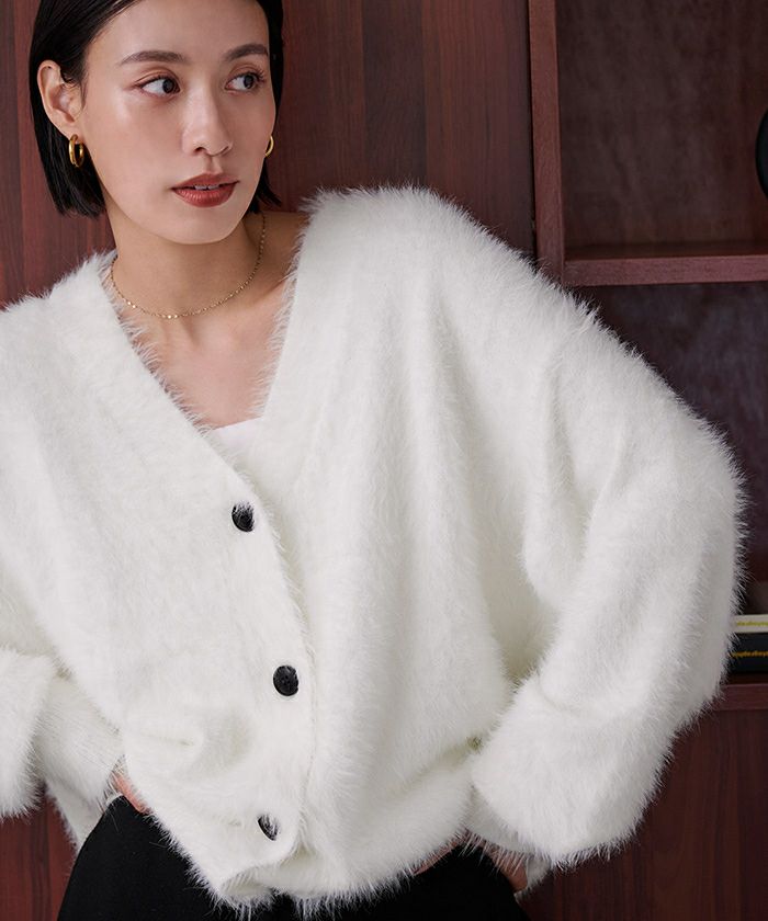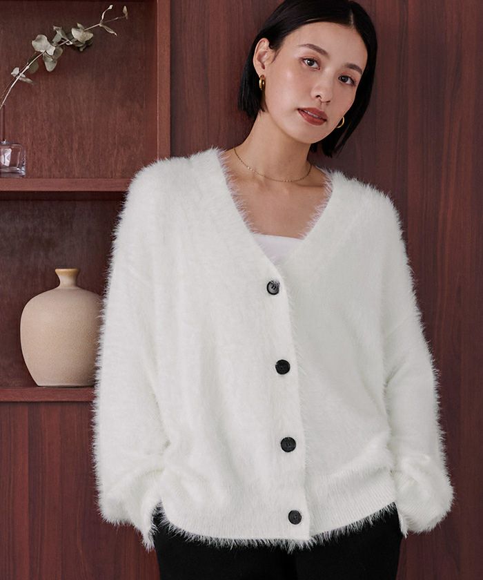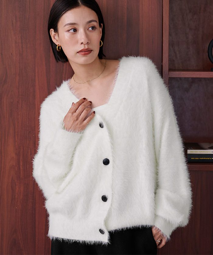 【黒川翼さんコラボアイテム】【期間限定★3000均一】 配色釦シャギーニットカーディガン